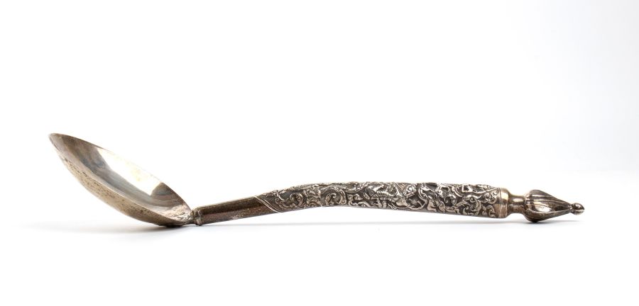 Cucchiaio birmano in argento XIX secolo Dimensioni: 23 x 8,3 cm. Peso: 151 gr