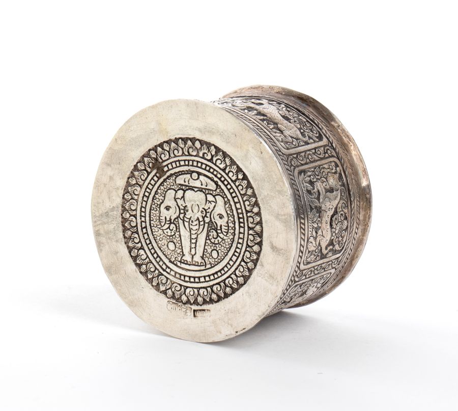 Scatola indiana in argento XIX secolo Altezza x diametro: 4,8 x 6,1. Peso: 82 gr.