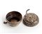Altezza x diametro: 4,5 x 5,6. Peso: 39 gr. di forma rotonda, sbalzata e cesellata con decorazioni floreali alternate a volute fogliate. Classificazione dello stato di conservazione: **** buono.