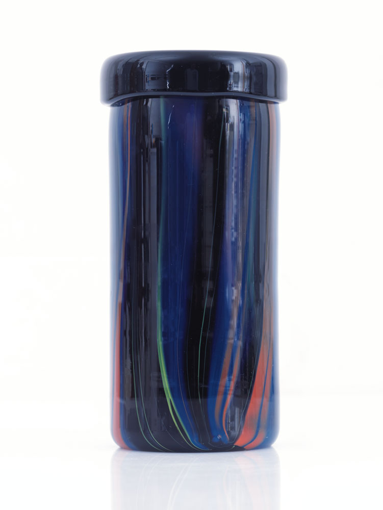 VASO IN VETRO SOFFIATO MULTICOLOR, MISSONI PER ARTE VETRO MURANO, ANNI '80, firma sul fondo "Missoni by Arte Vetro Murano cod. 27 - 69/300".