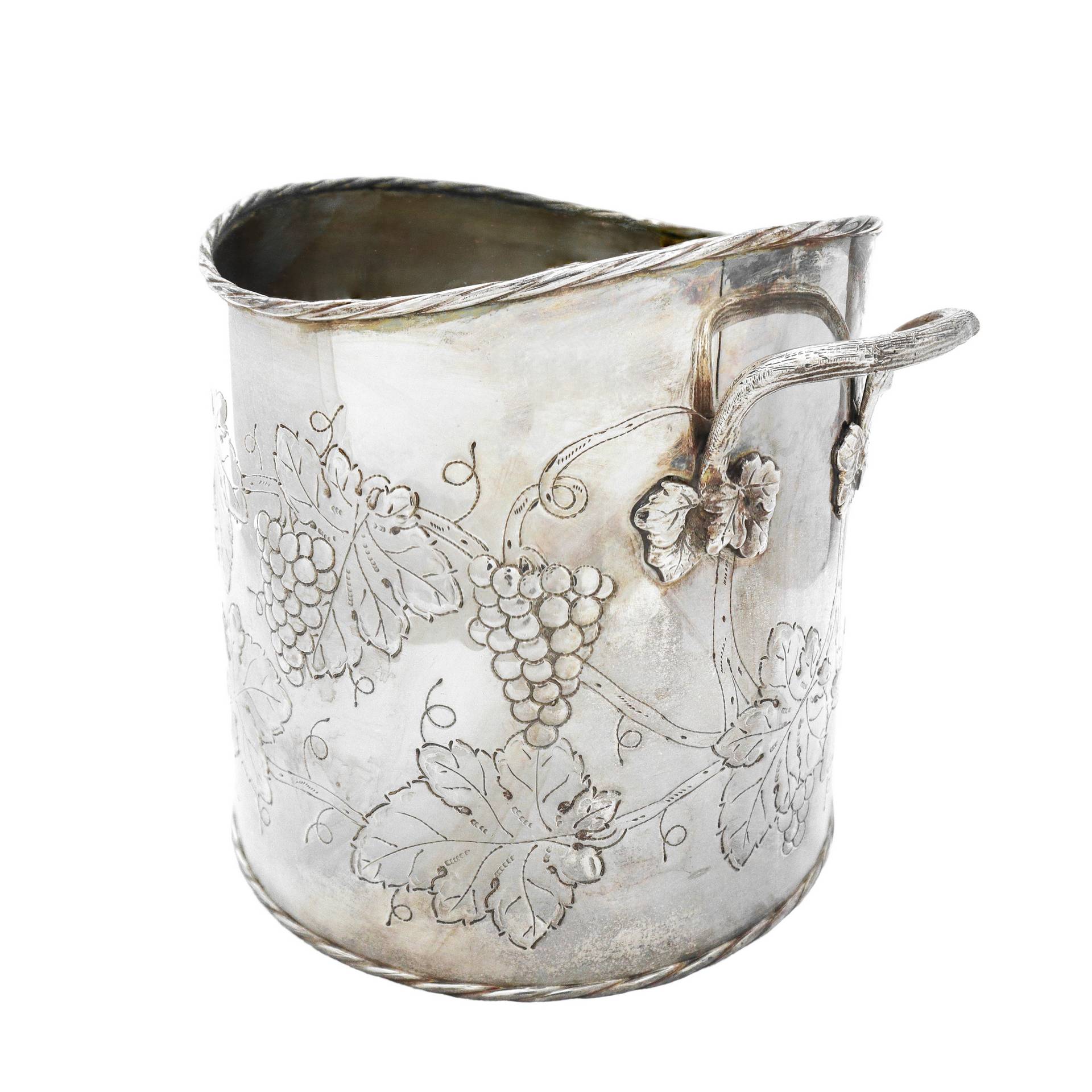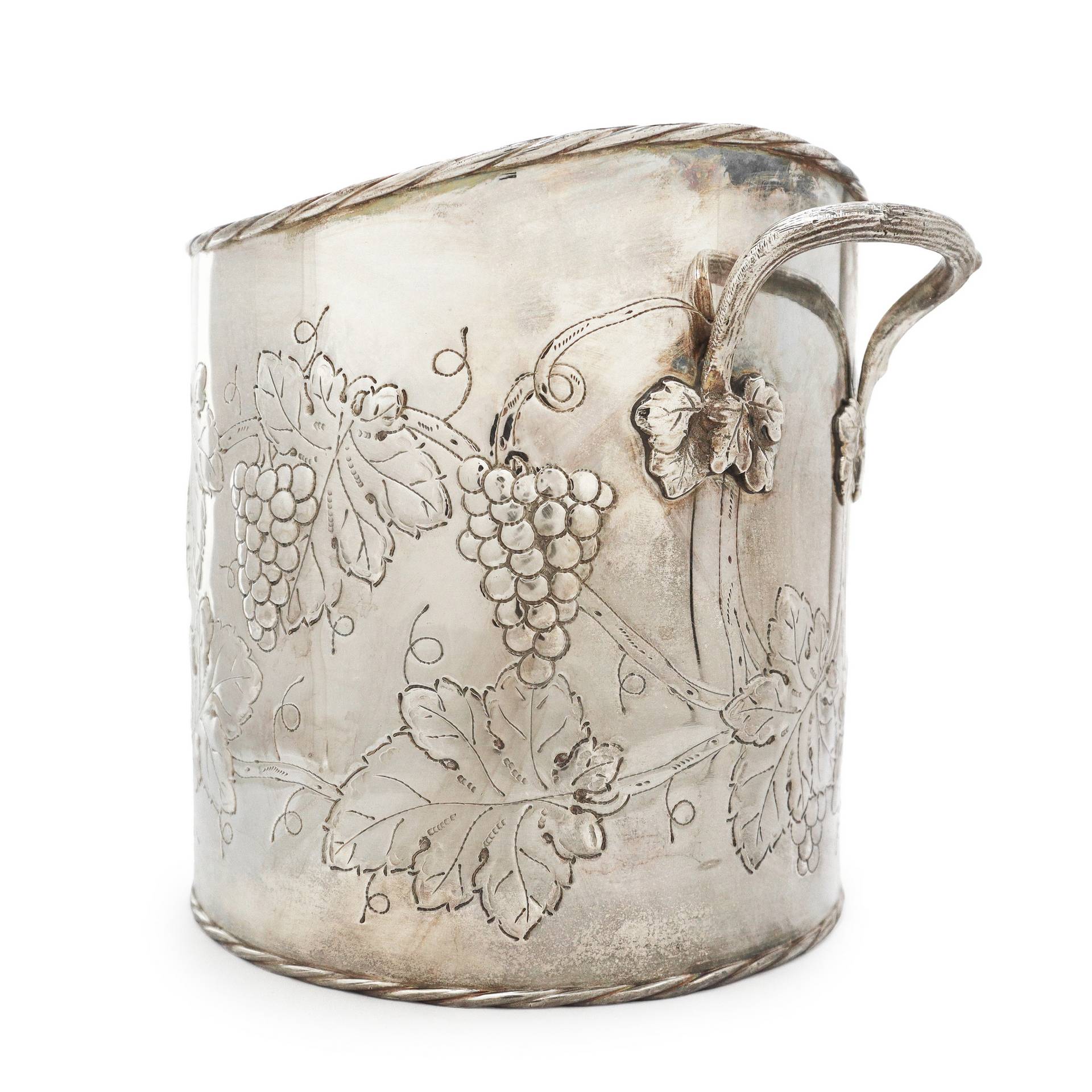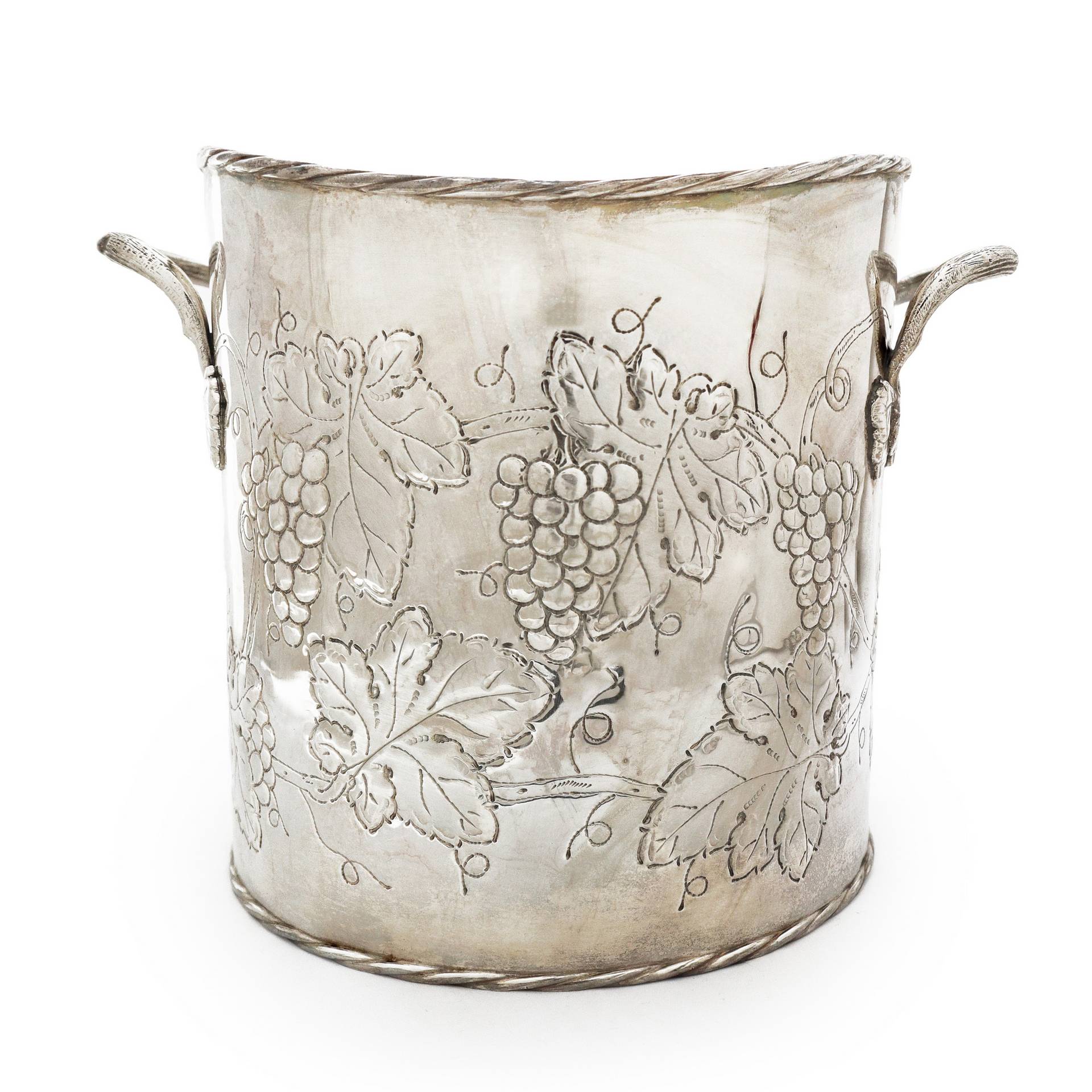 Argento Enrico Goretta Alessandria - Portaghiaccio in argento 800 sbalzato a mano con tralci di grappoli d'uva e prese laterali