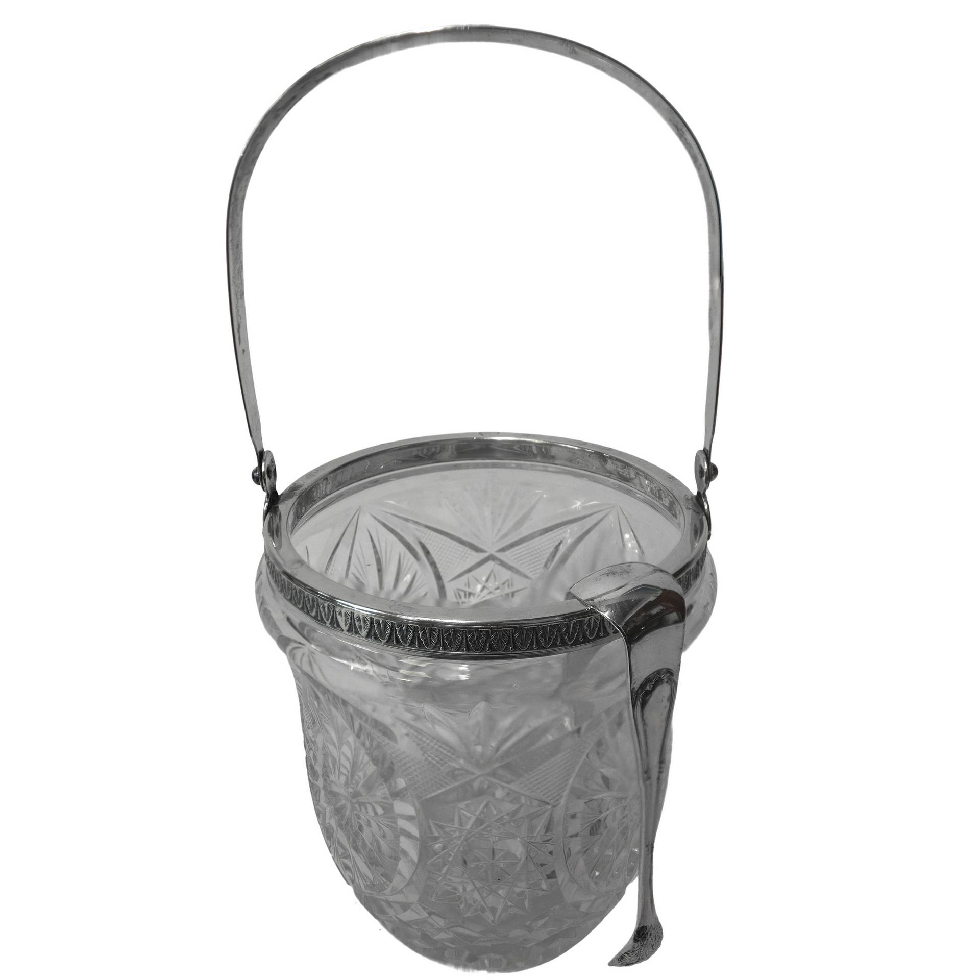 Secchiello porta ghiaccio in cristallo e argento 800 h cm 15