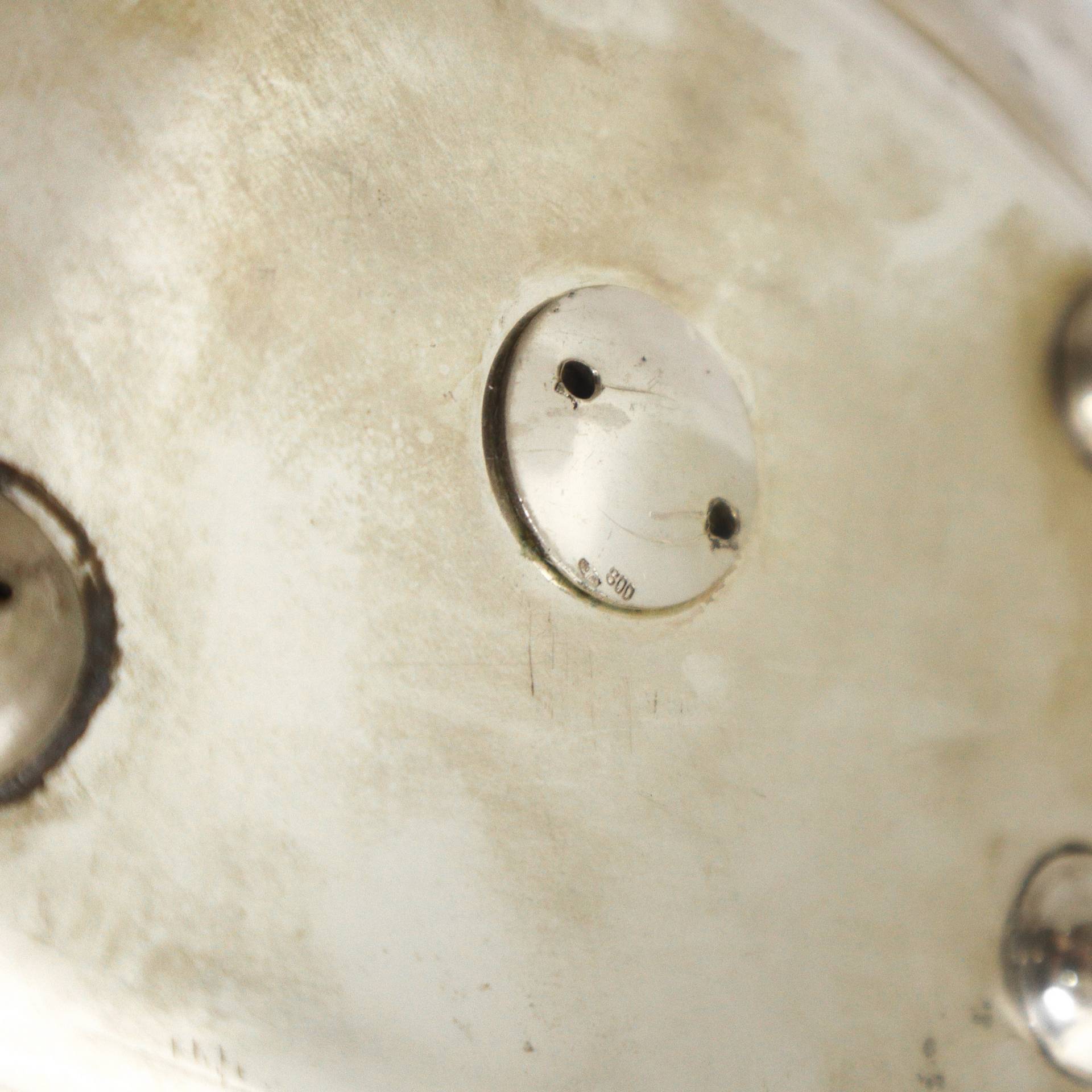 Lotto 36 | Menage in argento 800 con bottiglie in cristallo bugnato, con sale e pepe con cucchiaini in argento 800 e portastuzzicadenti