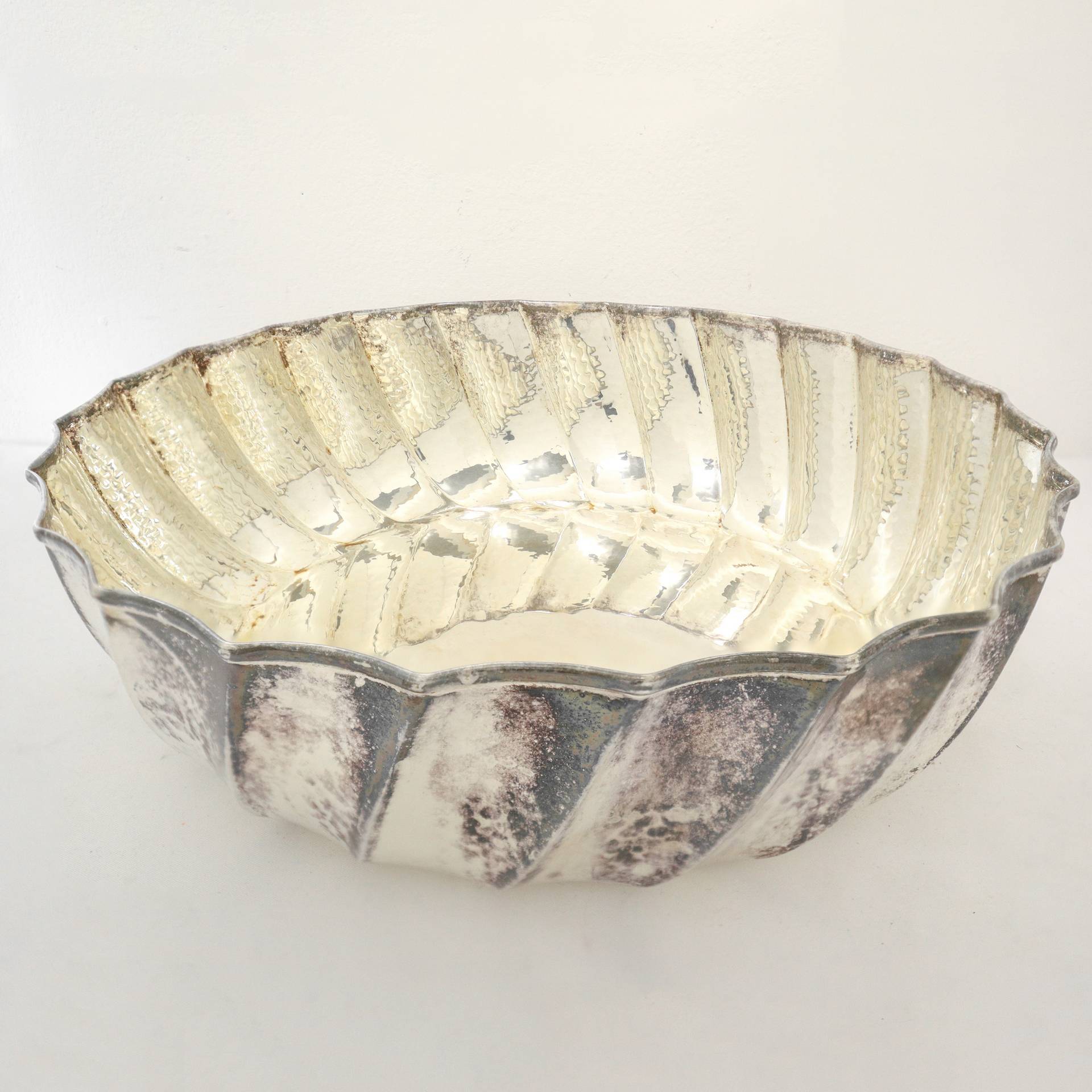Centrotavola in argento 800 battuto a mano con scanalature h cm 9 diametro cm 30 gr. 738 Punzone 800Punzone 800