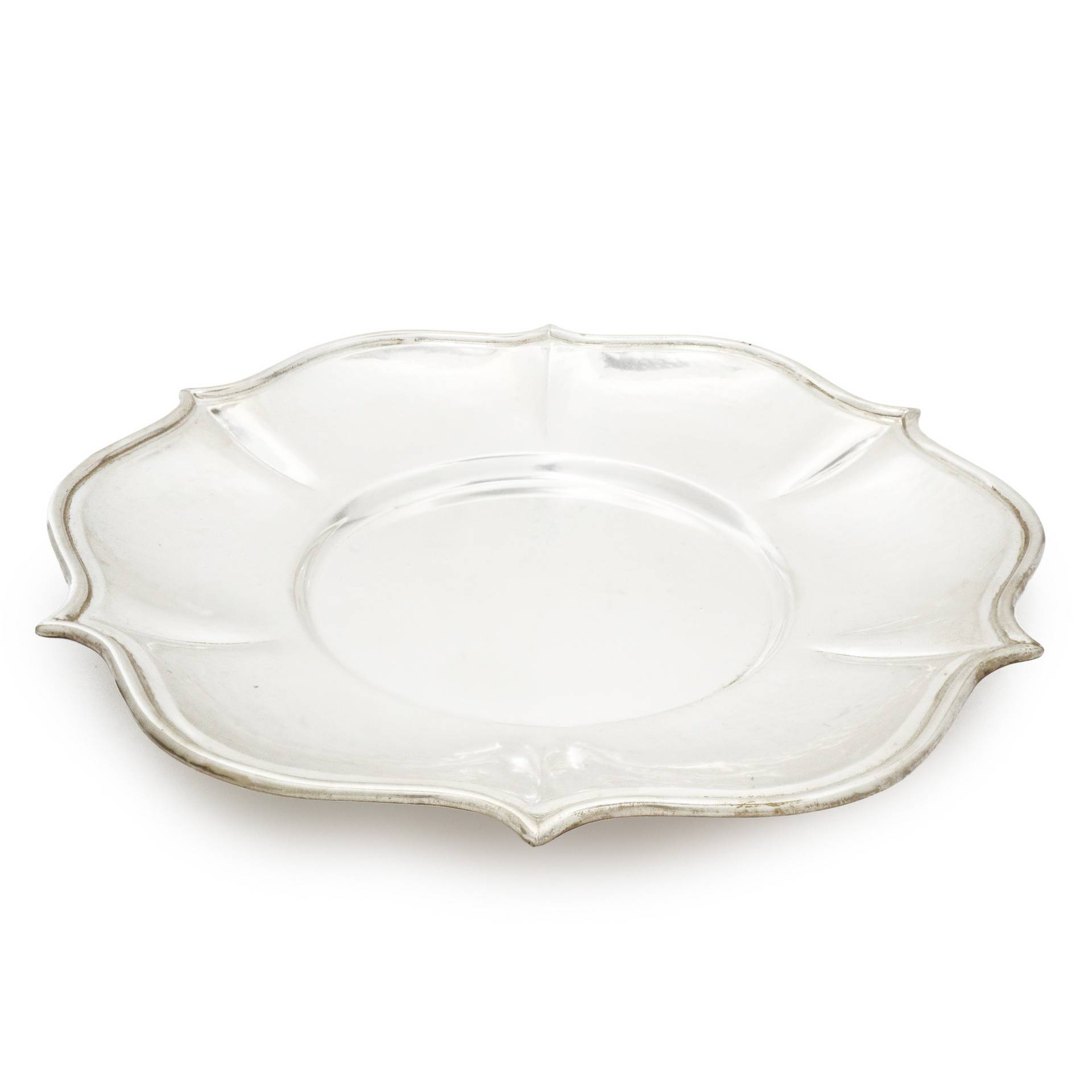 Vassoio portadolci in argento con bordo smerlato