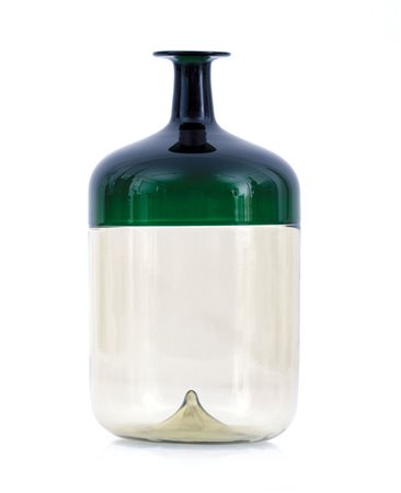 VENINI VASO "BOLLE" IN VETRO A INCALMO, VENINI, T.WIRKKALA, 1988, verde e...