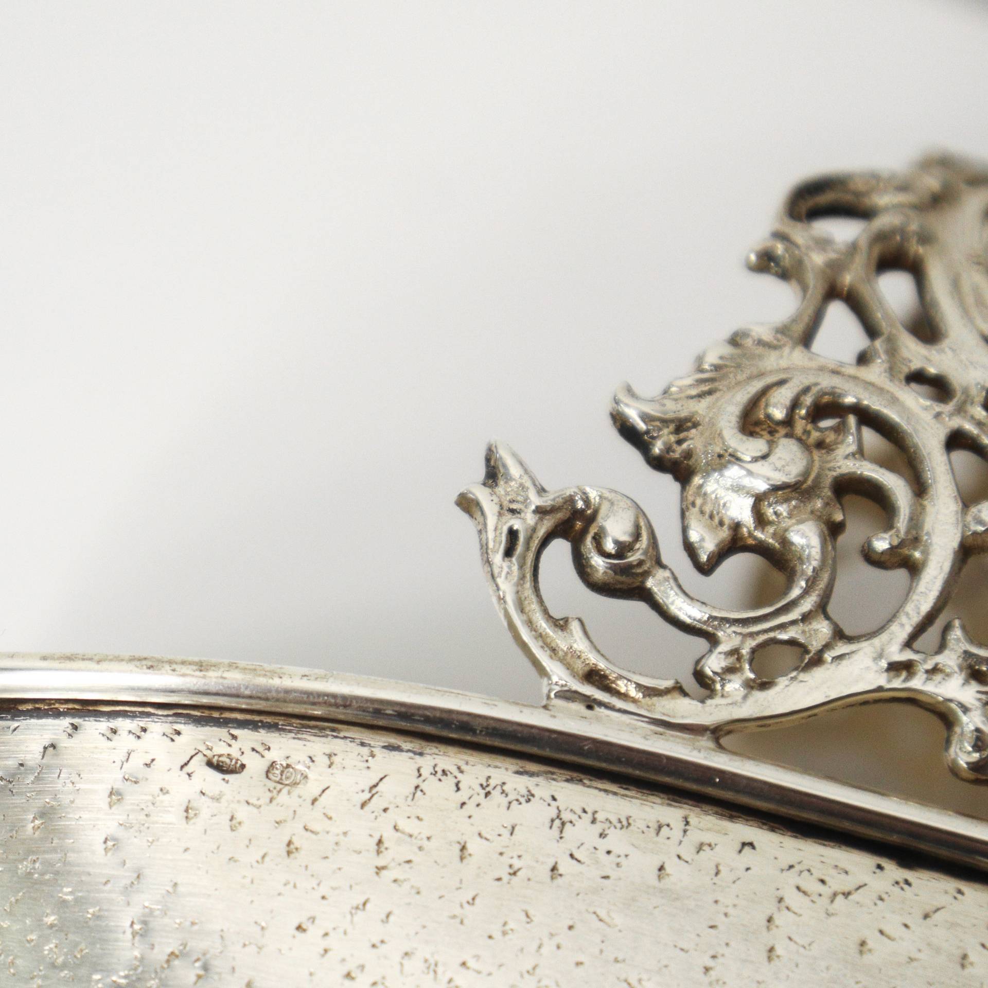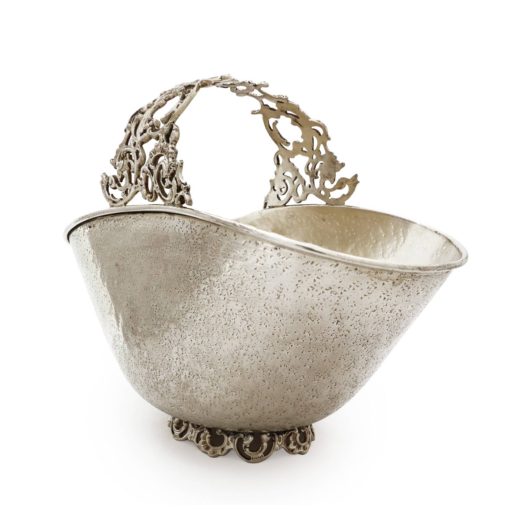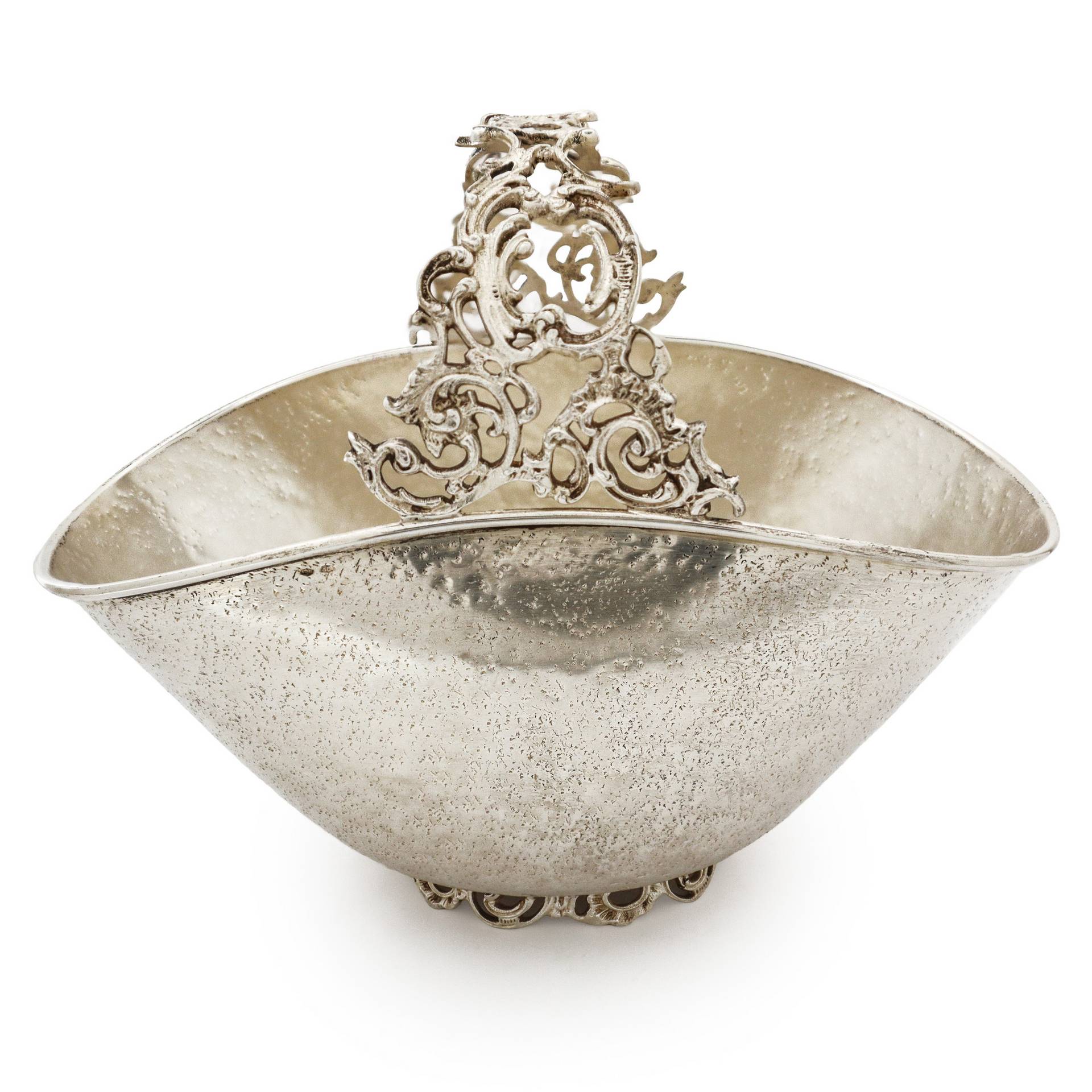 Portadolci in sheffield con base e presa con motivi a ghirlanda h cm 19X23