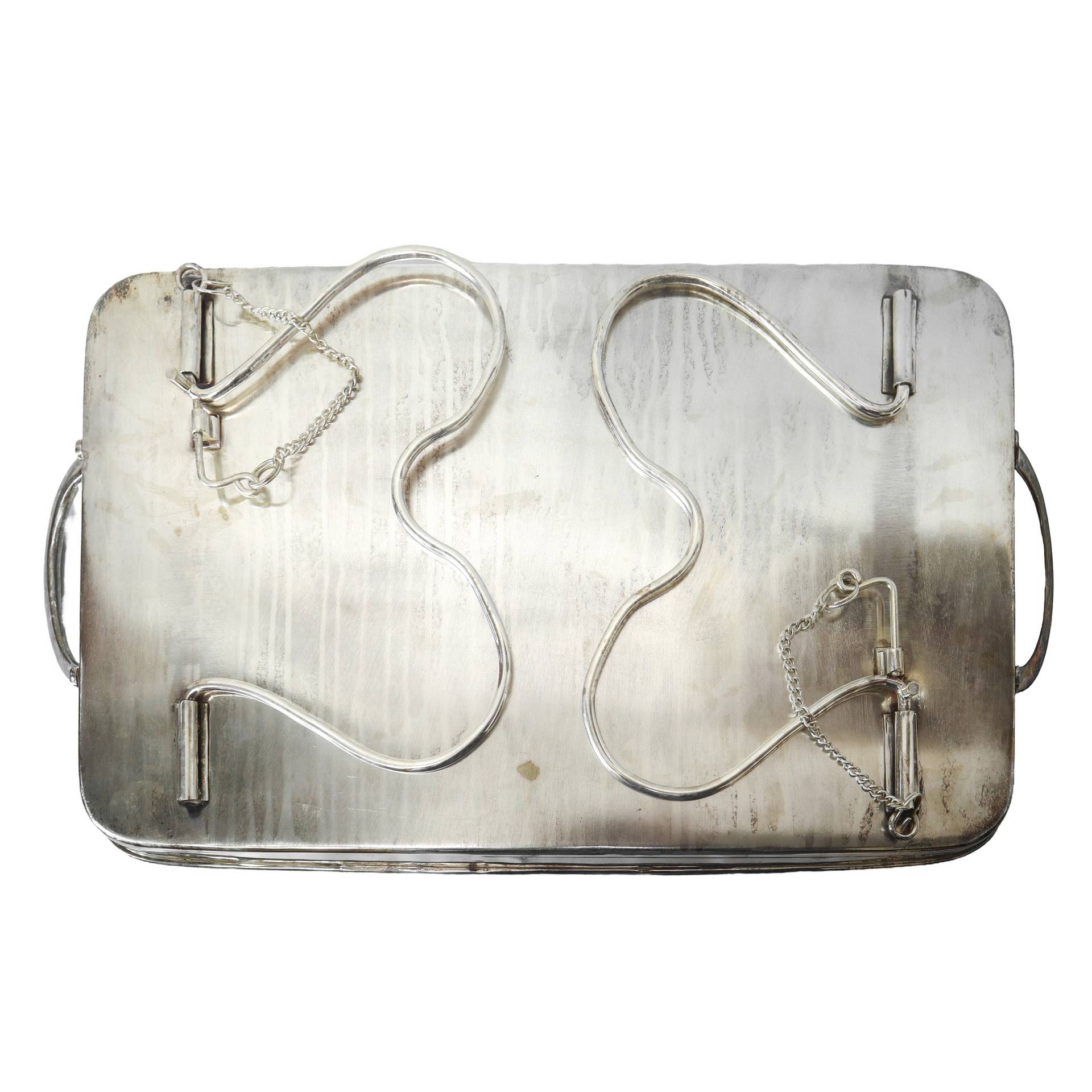 Vassoio da letto in Sheffield, 20th secolo cm 21X63 Decorato con motivi naturali. Decorato con motivi naturali.
