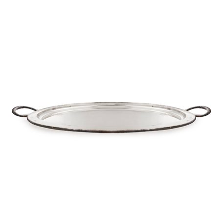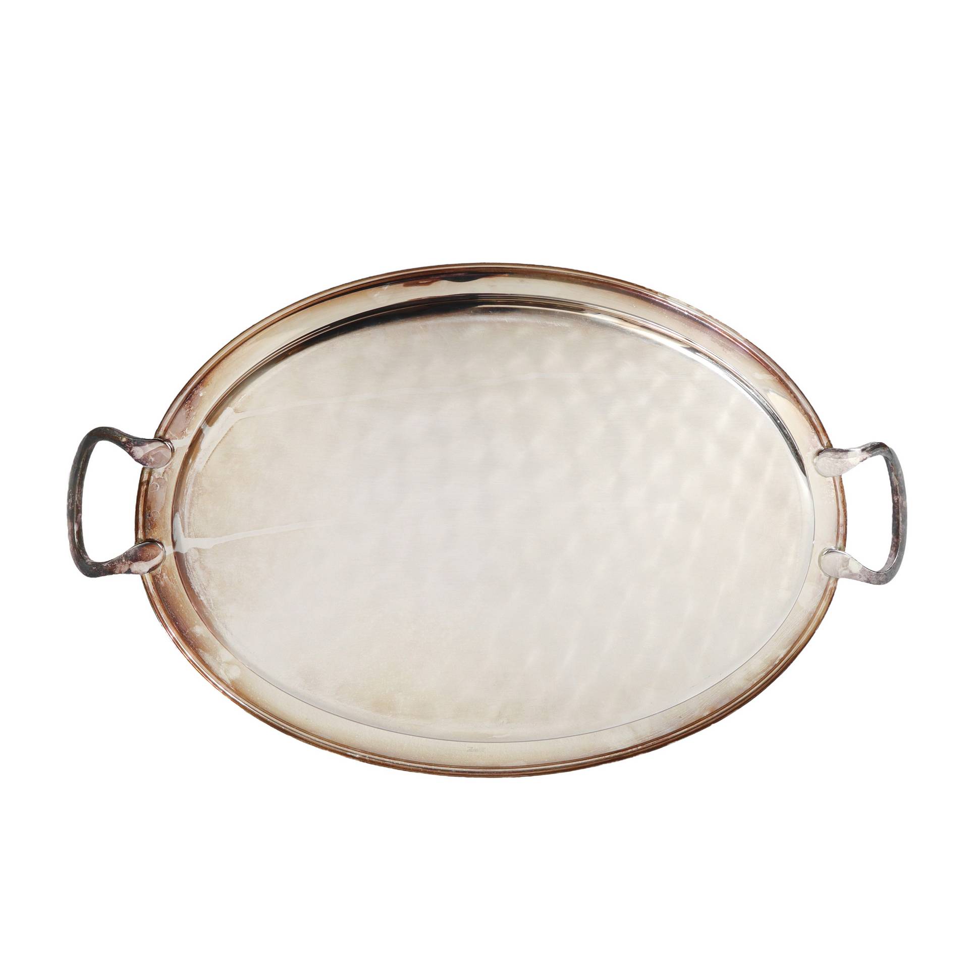 Vassoio ovale con manici in Sheffield. Cm 61x36 Firmato Zanetto. Firmato Zanetto.
