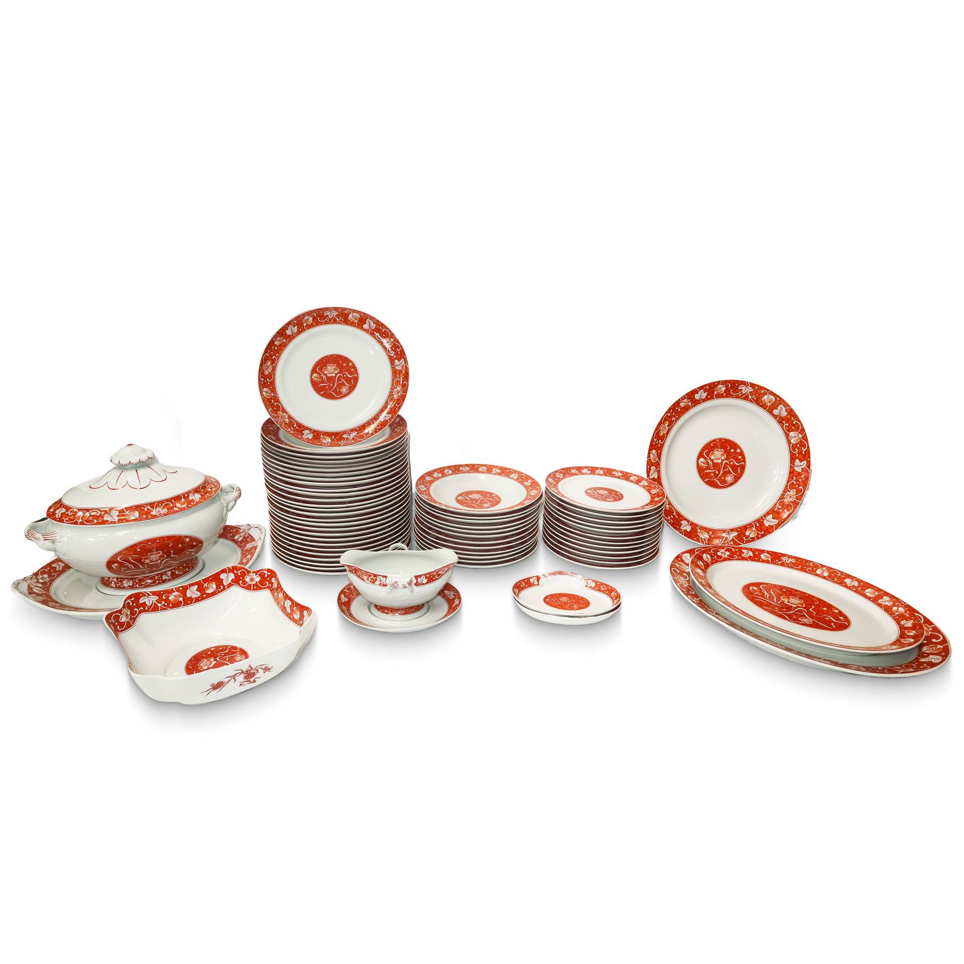 Lotto 125 | Vista Alegre Portugal Porcelain, Crystal (1824) - Servizio di piatti da 12 in porcellana con decori floreali arancioni sul bordo e al centro