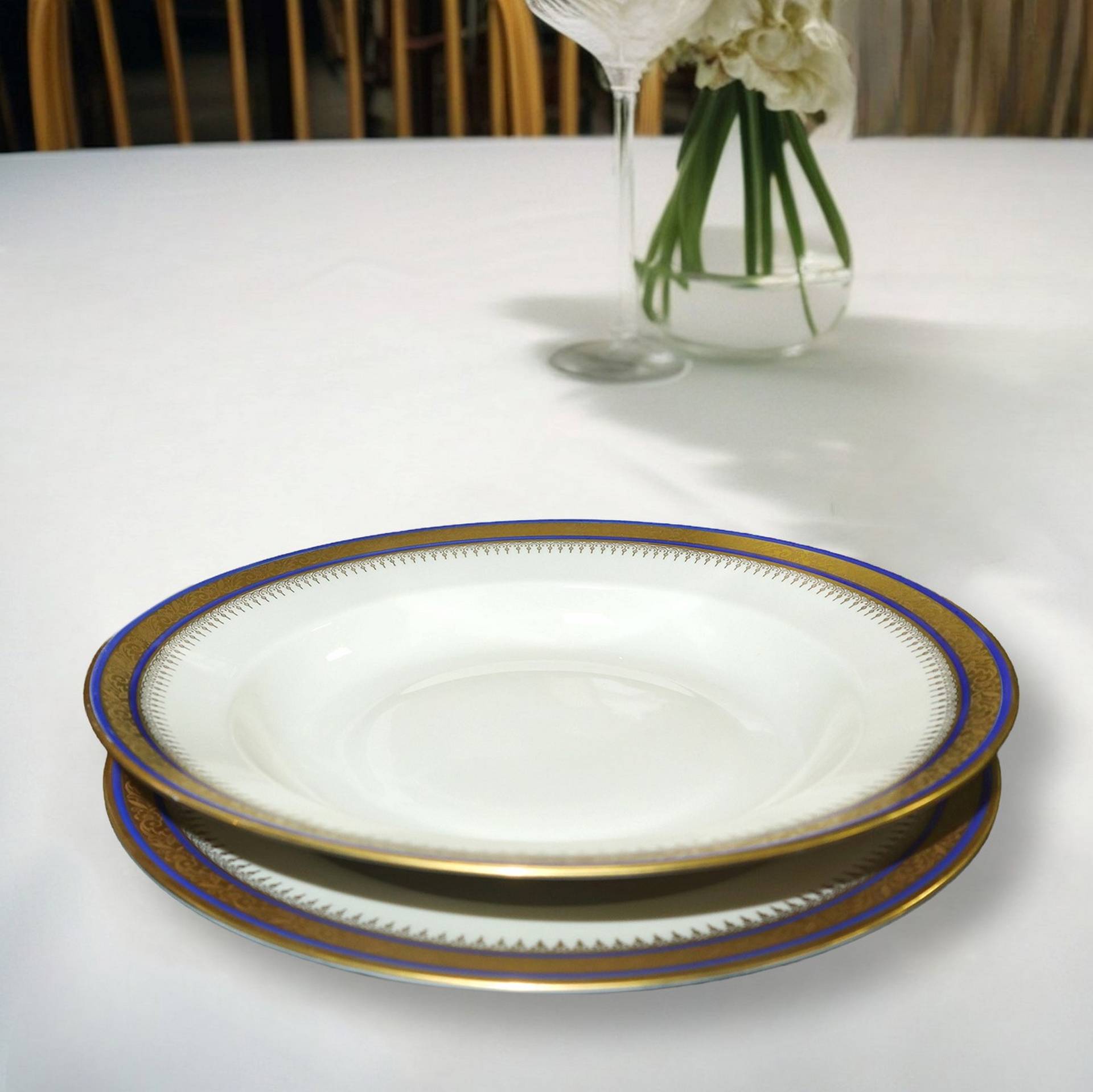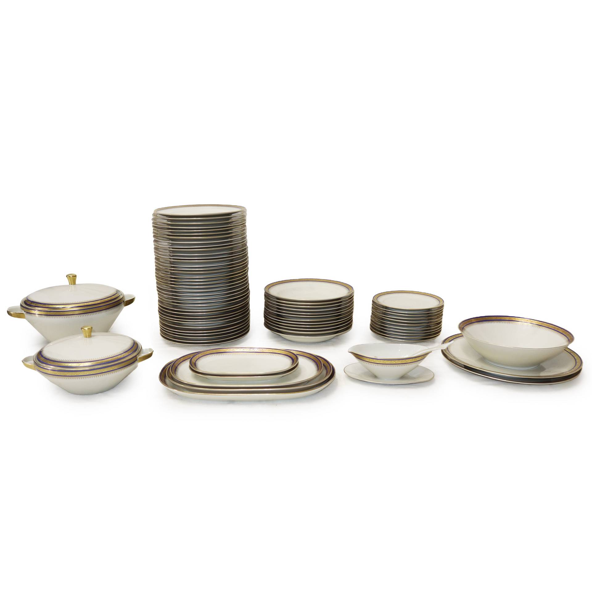 Bavaria - Completissimo servizio di stoviglie da 12 Composto da 24 piatti tondi piani, 12 piatti da primo, 3 vassoi ovali, 2 piatti tondi, 12 piattini per tazzine, 12 tazzine da caffe', 2 piatti tondi grandi, 1 zuppiera grande, 1 zuppiera piccola, 2 piatti piccoli ovali, 1 teiera con piatto, 1 lattiera, 1 zuccheriera, 1 salsiera e 1 insalatiera, 11 piattini piccoli da dolce, 12 tazze da brodo, 12 piattini. Minima filatura su un piatto fondo.Composto da 24 piatti tondi piani, 12 piatti da primo, 3 vassoi ovali, 2 piatti tondi, 12 piattini per tazzine, 12 tazzine da caffe', 2 piatti tondi grandi, 1 zuppiera grande, 1 zuppiera piccola, 2 piatti piccoli ovali, 1 teiera con piatto, 1 lattiera, 1 zuccheriera, 1 salsiera e 1 insalatiera, 11 piattini piccoli da dolce, 12 tazze da brodo, 12 piattini. Minima filatura su un piatto fondo.