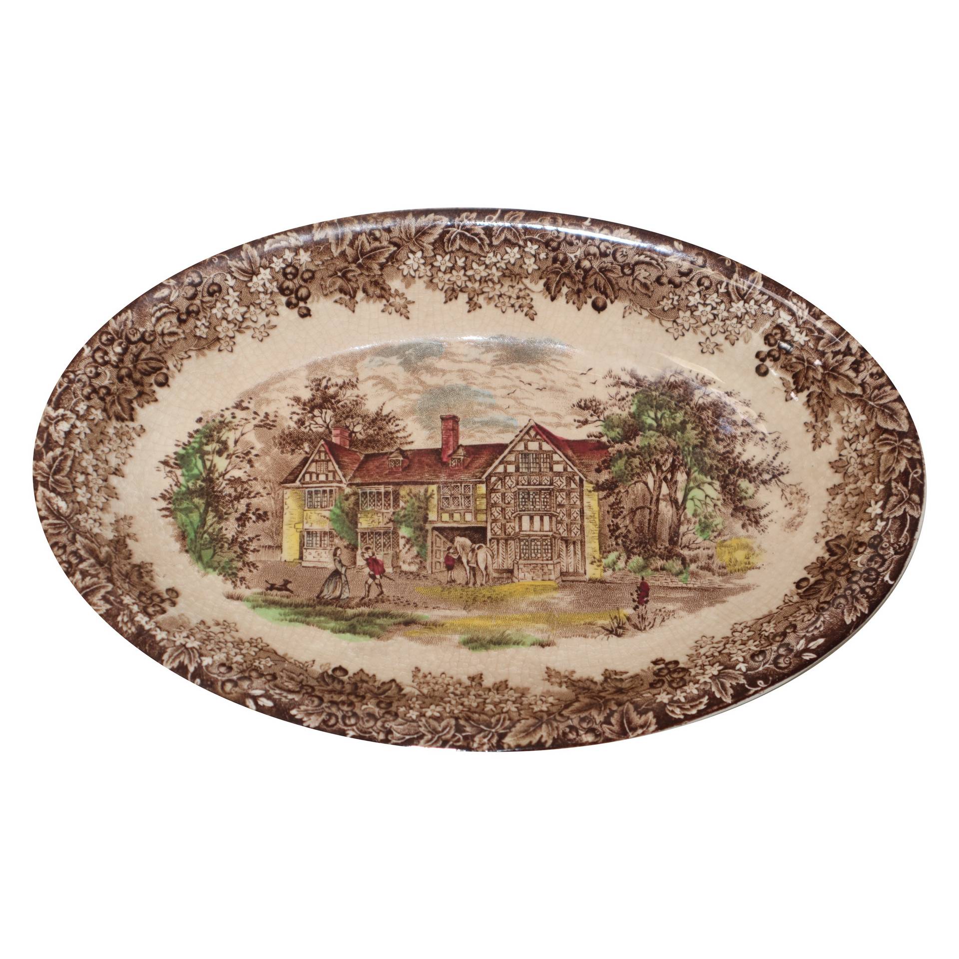 J & G Meakin England (1851-2000) - Servizio piatti policromi dis. Romantic England, 19th secolo Formato da 22 piatti piani, 9 fondi, N.8 piattini da frutta, N.2 piatti da portata ovali cm 35, N.2 piatti da portata ovali cm 30, N.1 salsiera ovale cm 22, N.1 salsiera rotonda cm 15, N.2 piatti piani con manici cm 26, N.2 piatti insalatiere con manici cm 28, N.2 Piatti insalatiere con manici cm 24, N.1 zuppiera. Piccoli difetti.Formato da 22 piatti piani, 9 fondi, N.8 piattini da frutta, N.2 piatti da portata ovali cm 35, N.2 piatti da portata ovali cm 30, N.1 salsiera ovale cm 22, N.1 salsiera rotonda cm 15, N.2 piatti piani con manici cm 26, N.2 piatti insalatiere con manici cm 28, N.2 Piatti insalatiere con manici cm 24, N.1 zuppiera. Piccoli difetti.