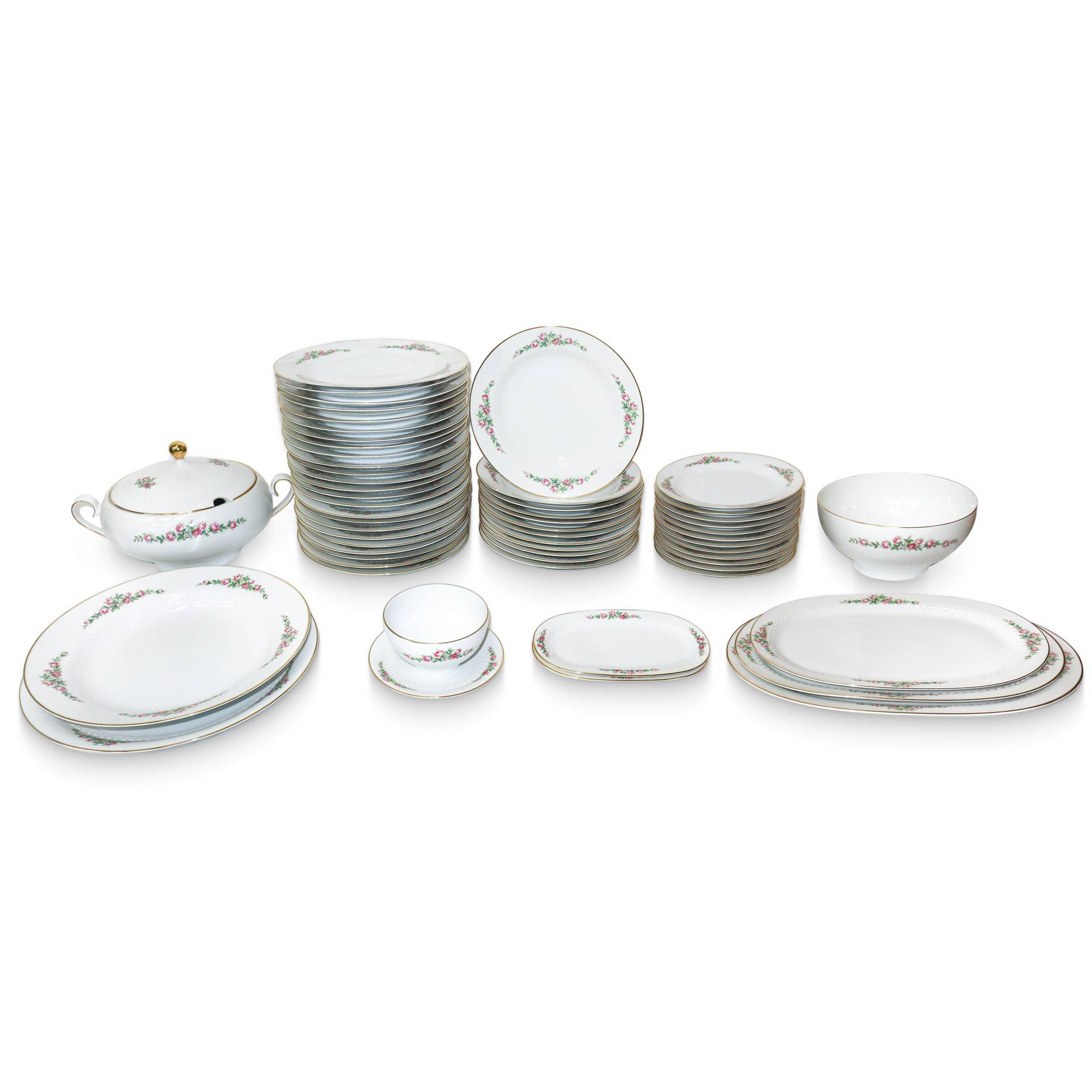 Hutschenreuther Germany - Servizio di piatti bianco con decori floreali Servizio composto da: 23 piatti piani, 12 piatti fondi, 12 piatti frutta, una zuppiera, una salsiera, un'insalatiera, quattro piatti da portata ovali, 2 piatti da portata rotondi. Presente sbeccatura su un piatto da portata rotondo e presenti minime riparazioni alla doratura del bordo di alcuni piatti.Servizio composto da: 23 piatti piani, 12 piatti fondi, 12 piatti frutta, una zuppiera, una salsiera, un'insalatiera, quattro piatti da portata ovali, 2 piatti da portata rotondi. Presente sbeccatura su un piatto da portata rotondo e presenti minime riparazioni alla doratura del bordo di alcuni piatti.