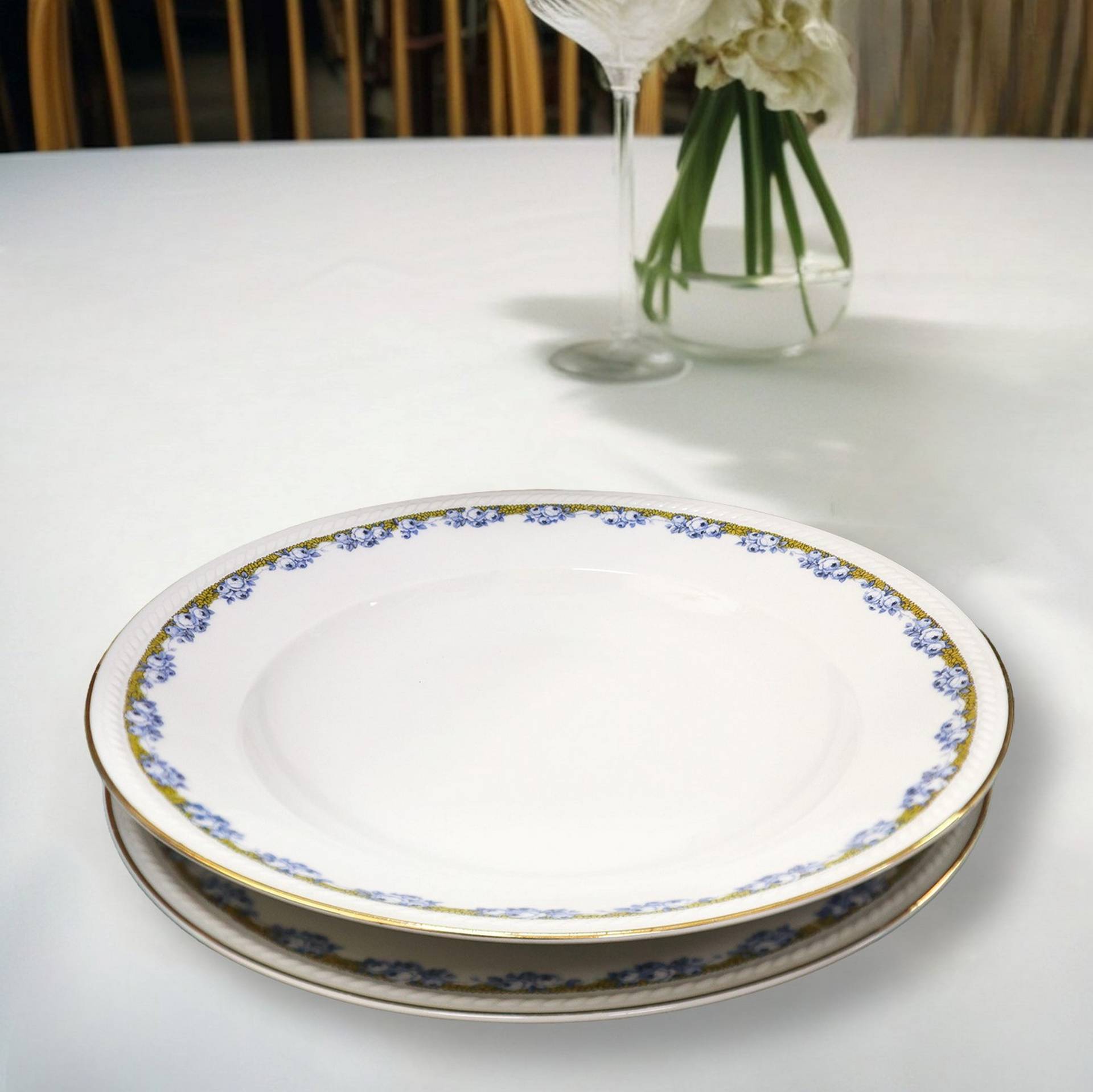 Freiberg German Porcellana - Servizio in porcellana bianca con motivi florali azzurri