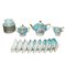 Composto da: teiera, lattiera, zuccheriera e 10 tazze, 12 piattini. Sbeccatura sul becco della teiera.