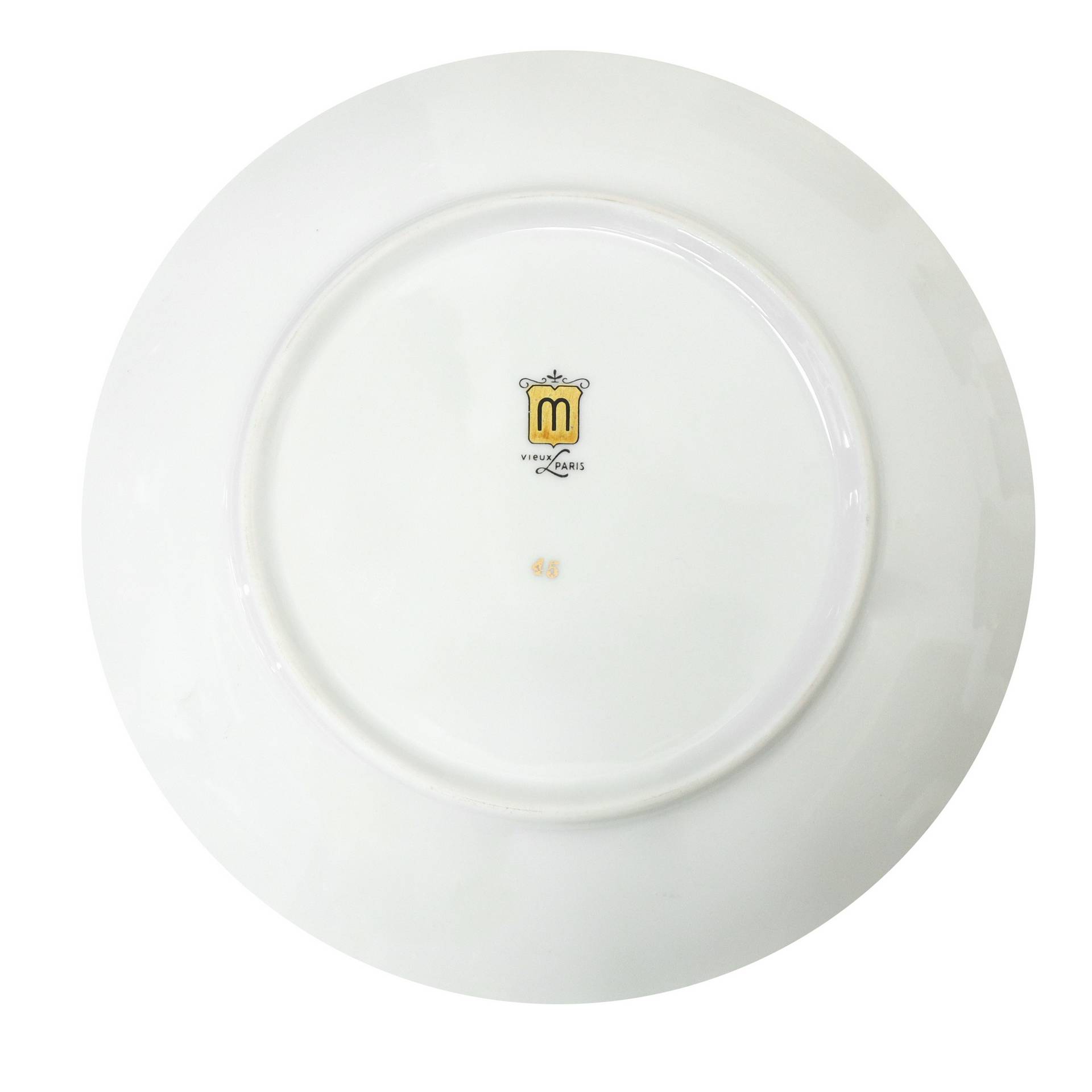 Vieux Paris - Servizio da 12 da caffe', con piatto, piattini e tazzina, in porcellana bianca con decori dorati e neri