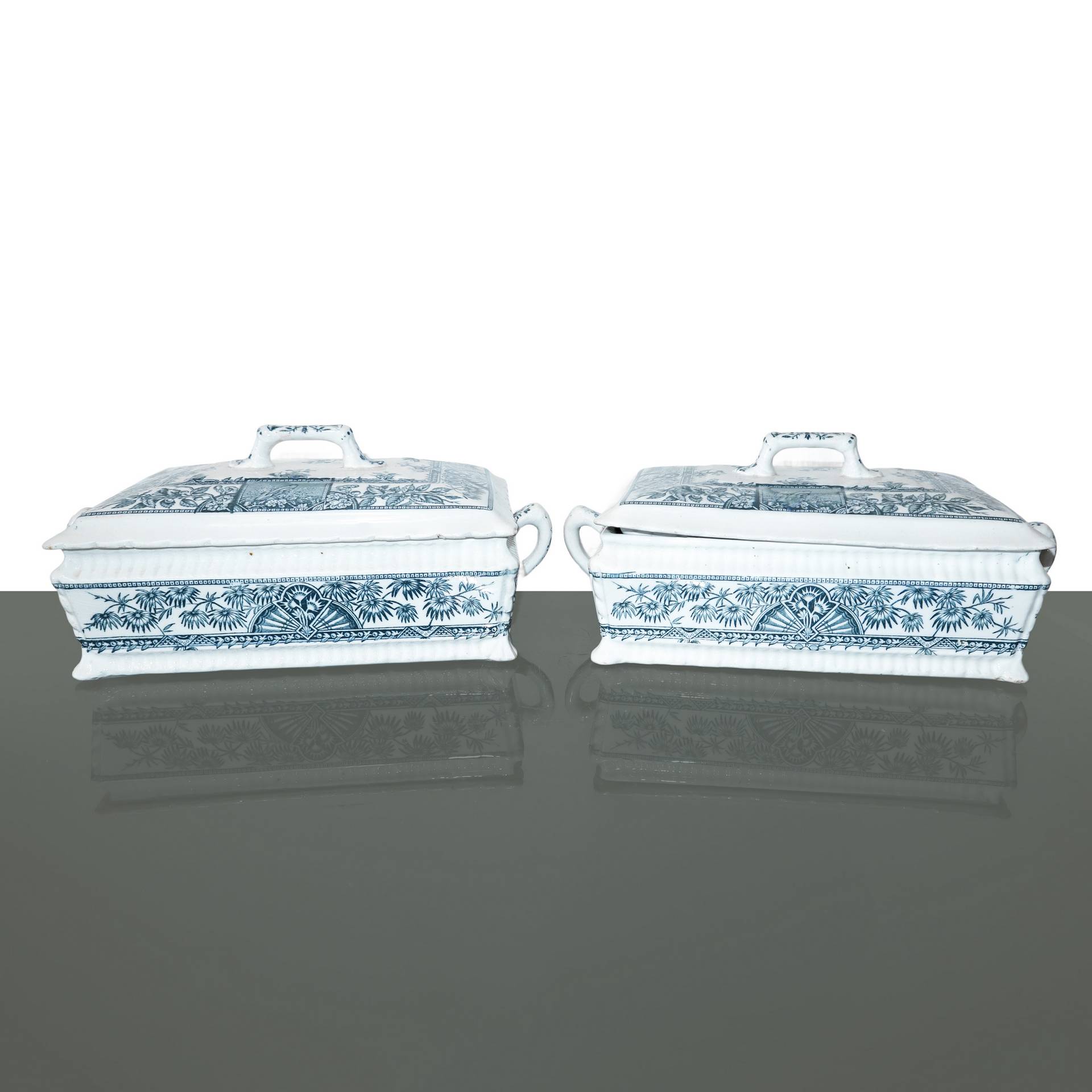 Alexandria Germania Porcellana - Coppia di porta consommè con coperchio con presa e manico in porcellana decorata a motivi floreali