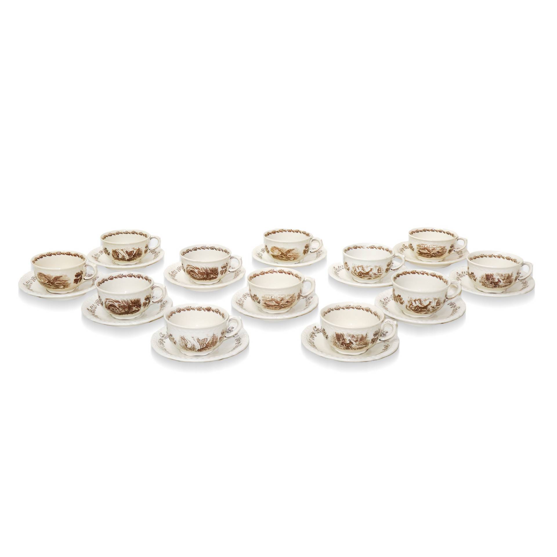Villeroy & Boch Dresden - Servizio da te per 12, Villeroy & Bosh, Dresden mod. Nimrod, con raffigurazioni di diverse scene da Caccia, Composto da N. 12 tazze con piattinoComposto da N. 12 tazze con piattino