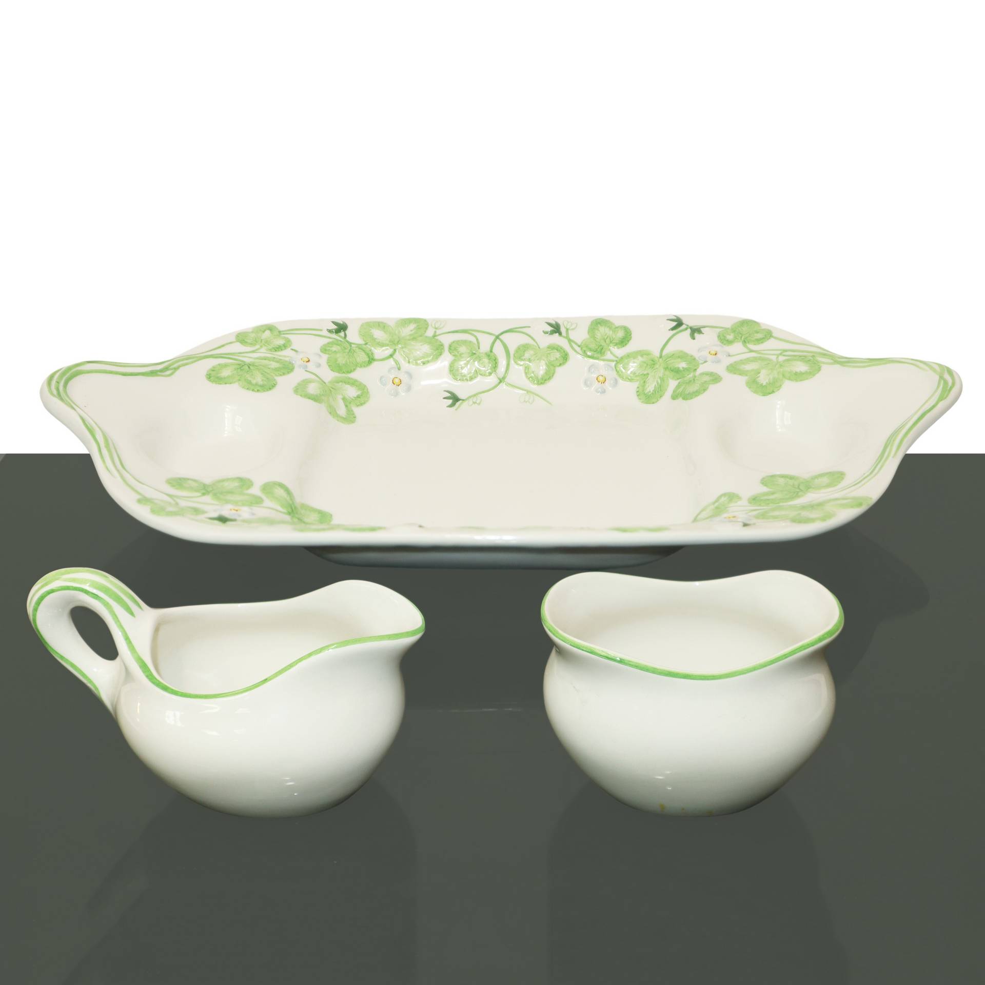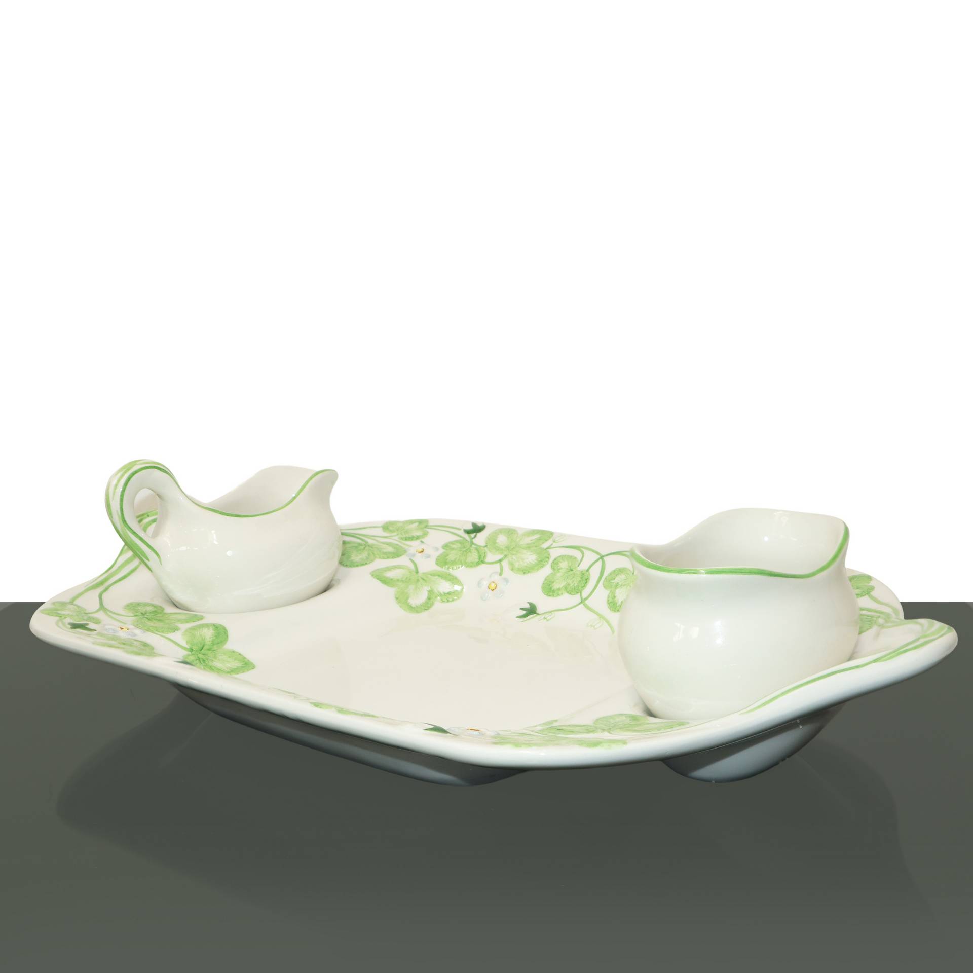 Ceramiche Este - Piatto da portata con salsiere, decorazioni di fiori e foglie