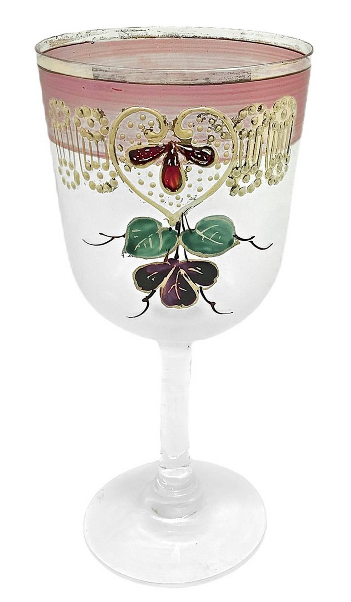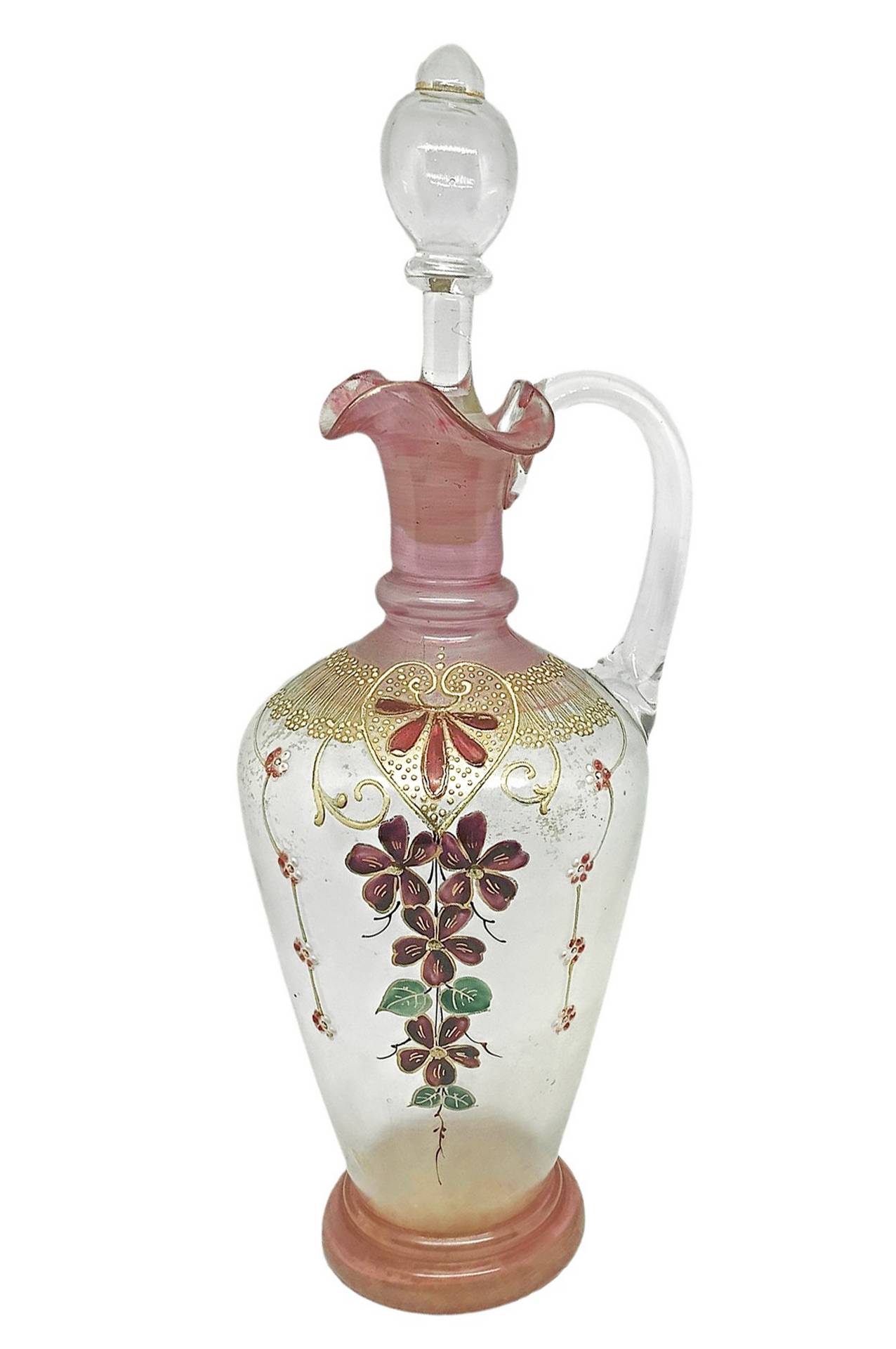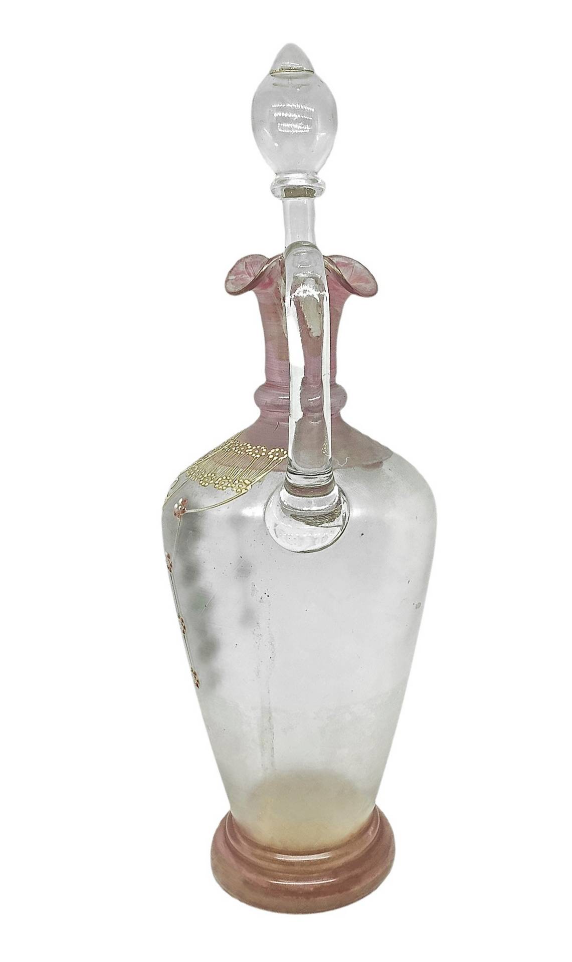 Servizio da rosolio Composto da: 2 bicchieri e 1 bottiglia con decori di fiori in oroComposto da: 2 bicchieri e 1 bottiglia con decori di fiori in oro