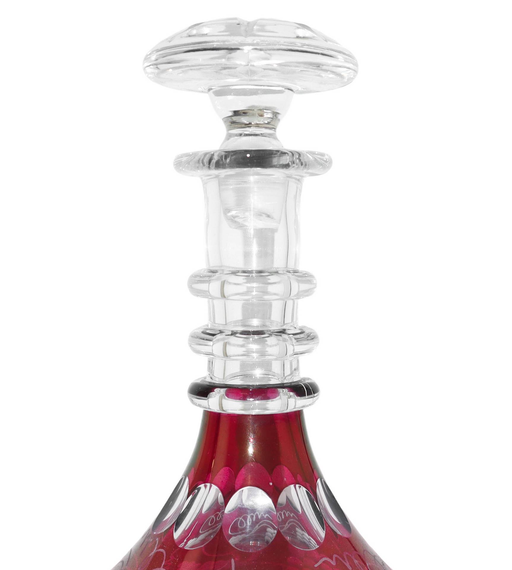 Decanter in vetro colorato e decorato a tralci e foglie d'uva