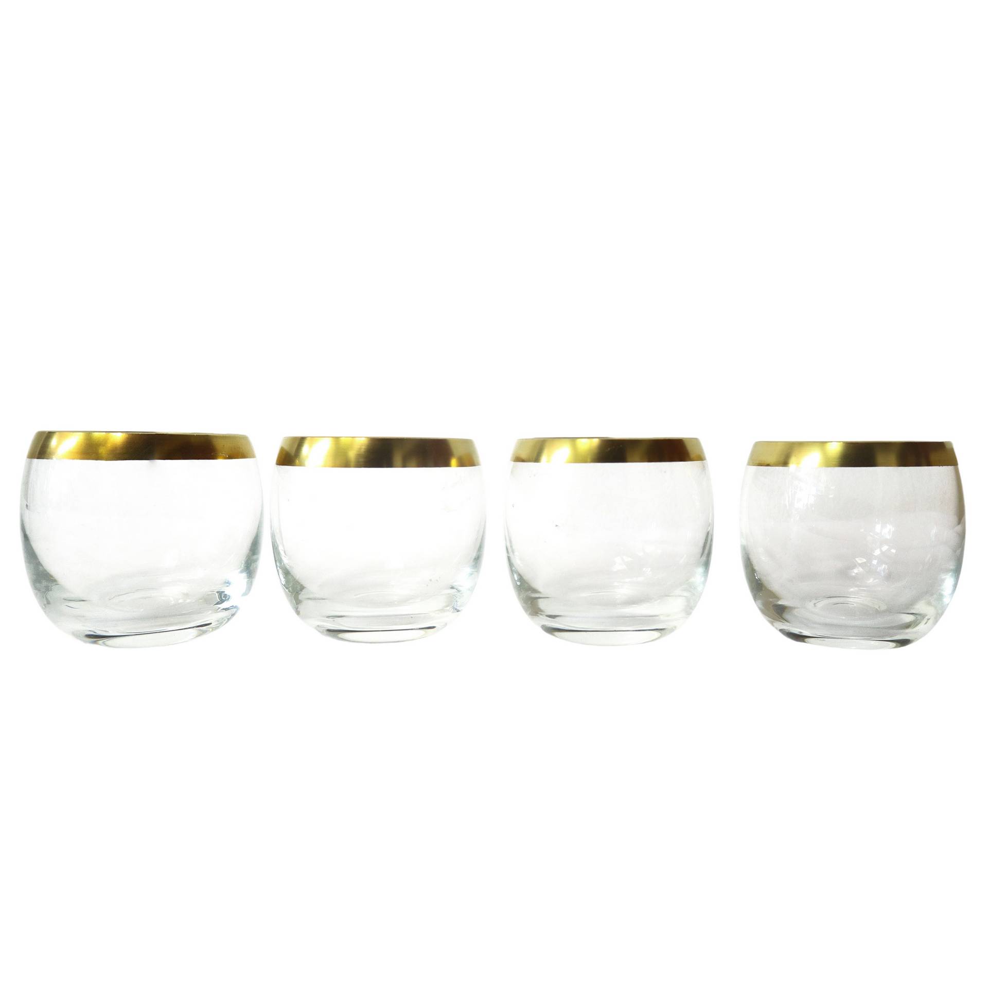 Quattro bicchieri da cocktail in vetro con bordo dorato