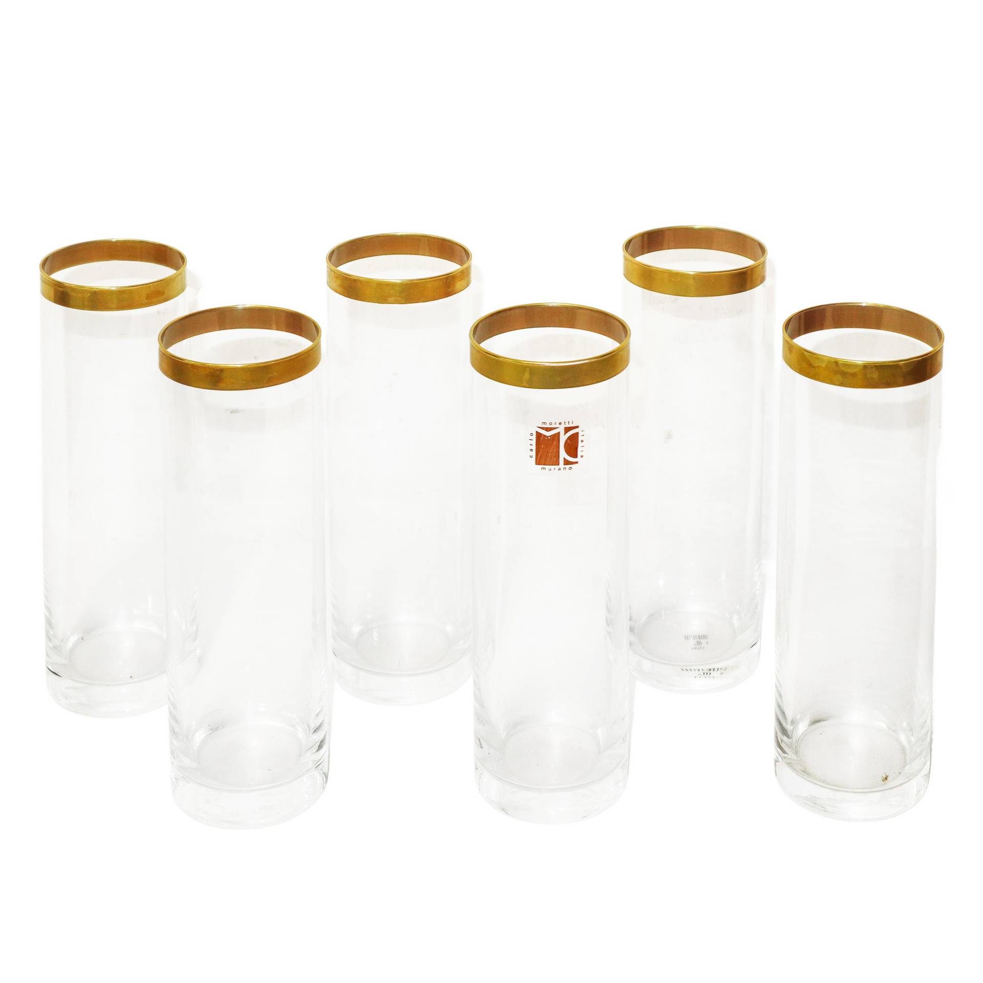 Carlo Moretti (1958) - sei bicchieri long drink in cristallo di Murano filo oro Firma alla base Firma alla base