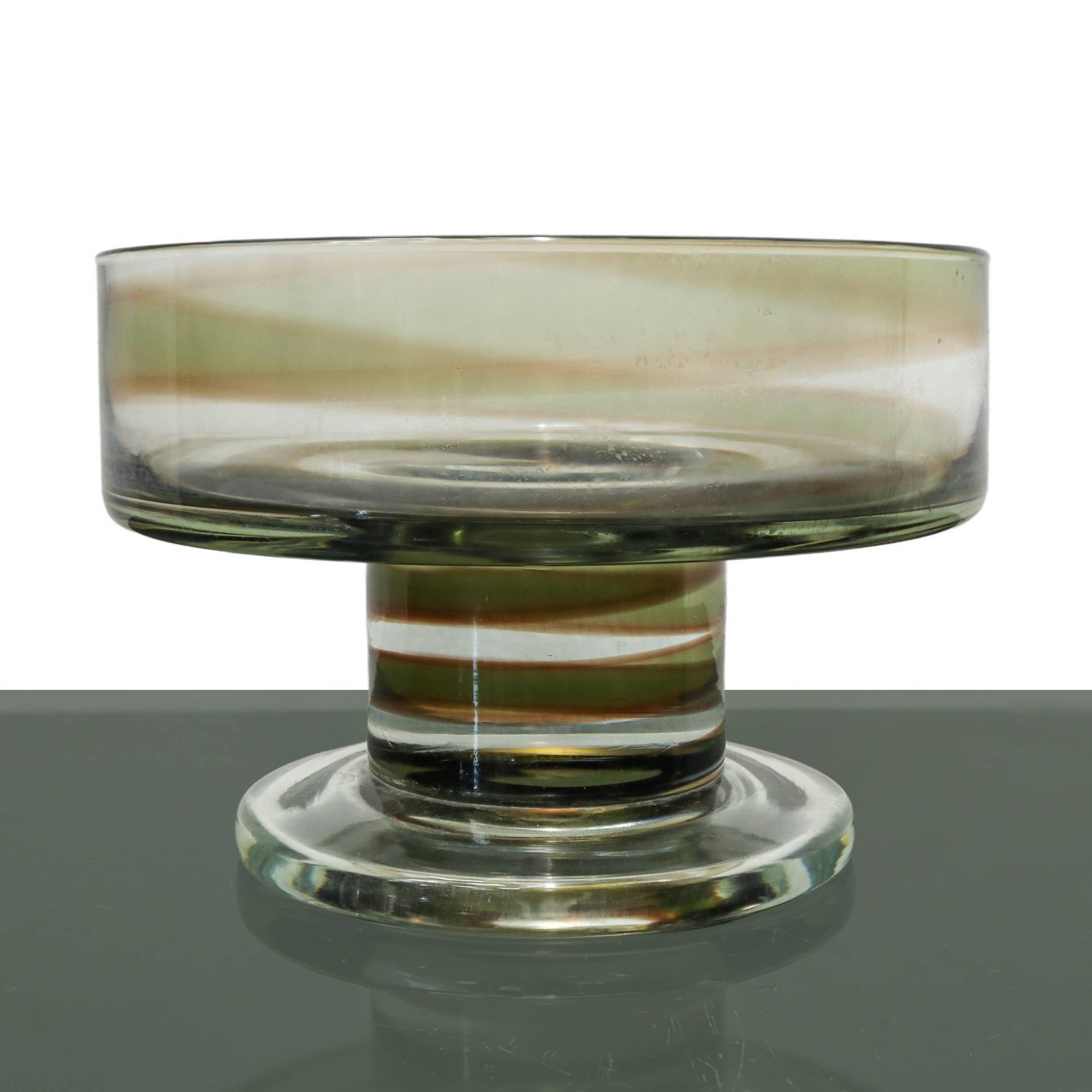 Alzatina in vetro trasparente, decoro spirale marrone