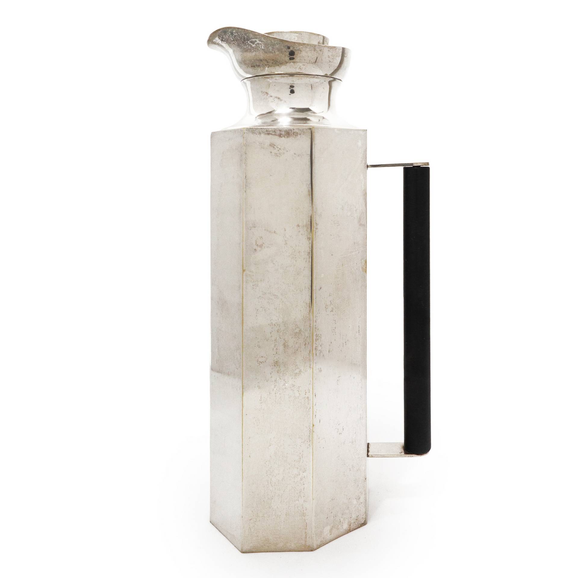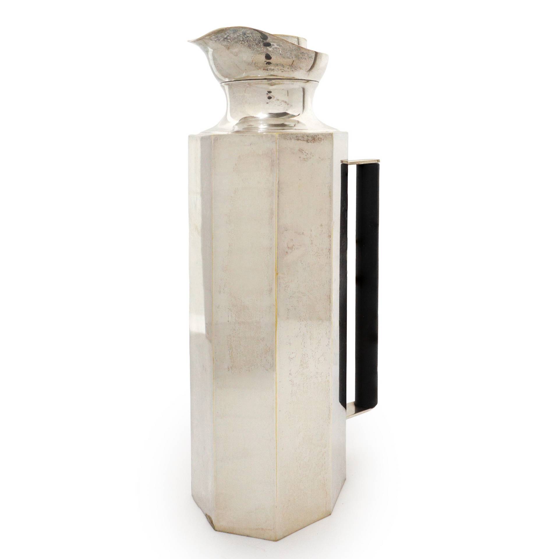 Thermos Silver plated con manico in legno nero, 20th secolo