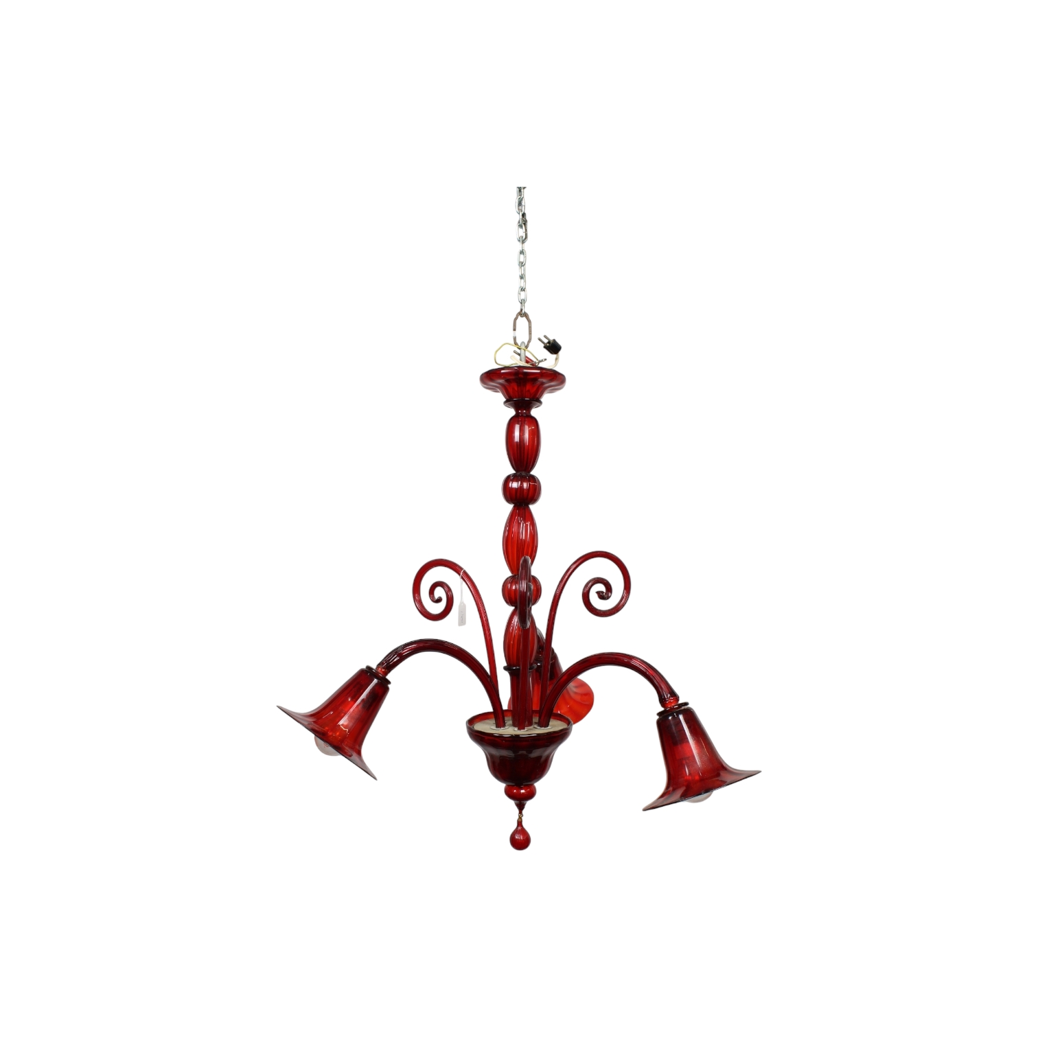 LAMPADARIO DI MURANO di colore rosso a tre luci produzione italiana anni 50 h cm 90 x 72