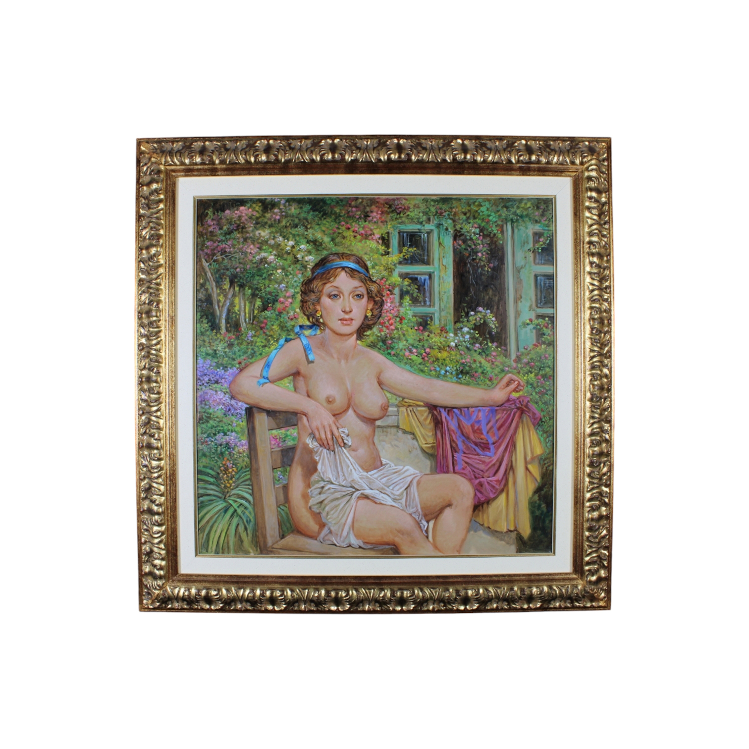 VINCENZO BUSCICCHIO olio su tela , dolci raggi del sole in giardino, Reca garanzia di autenticità firmata sul retro e relativo certificato di autenticità h cm 70 x 70
