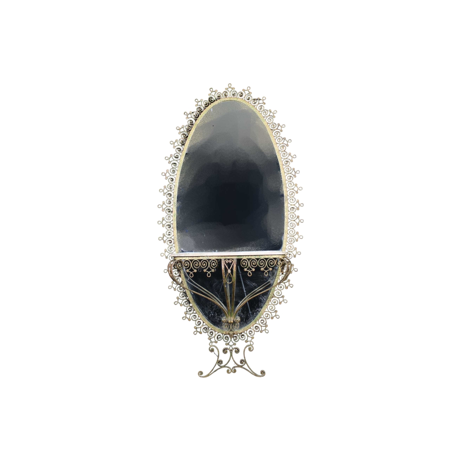 SPECCHIO DA INGRESSO E CONSOLLE in vetro anni 60 produzione italiana in ottone a motivo floreali design Pierluigi Colli h cm 225 x 35 x 112