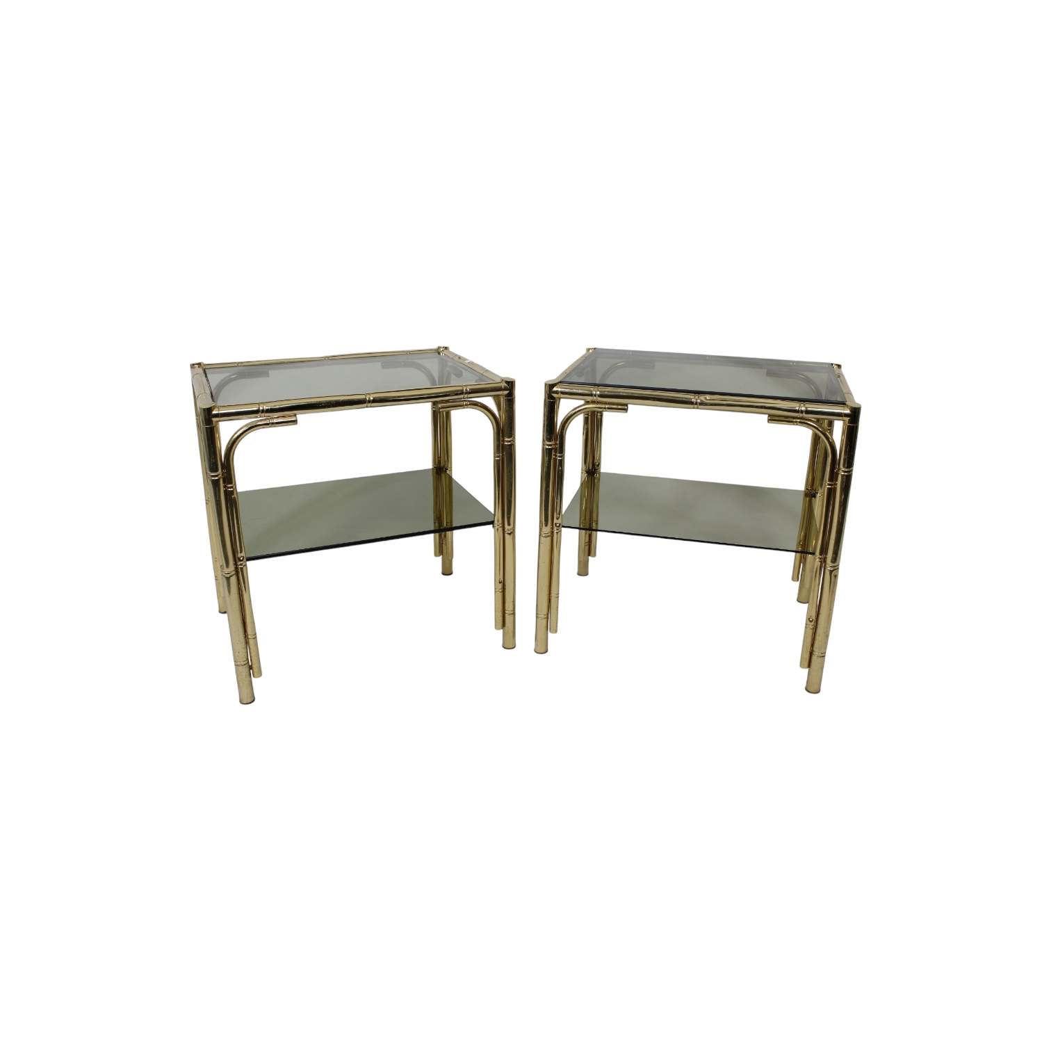 COPPIA DI TAVOLINI in ottone e vetro fume' produzione anni 70 h cm 52 x 50 x 37