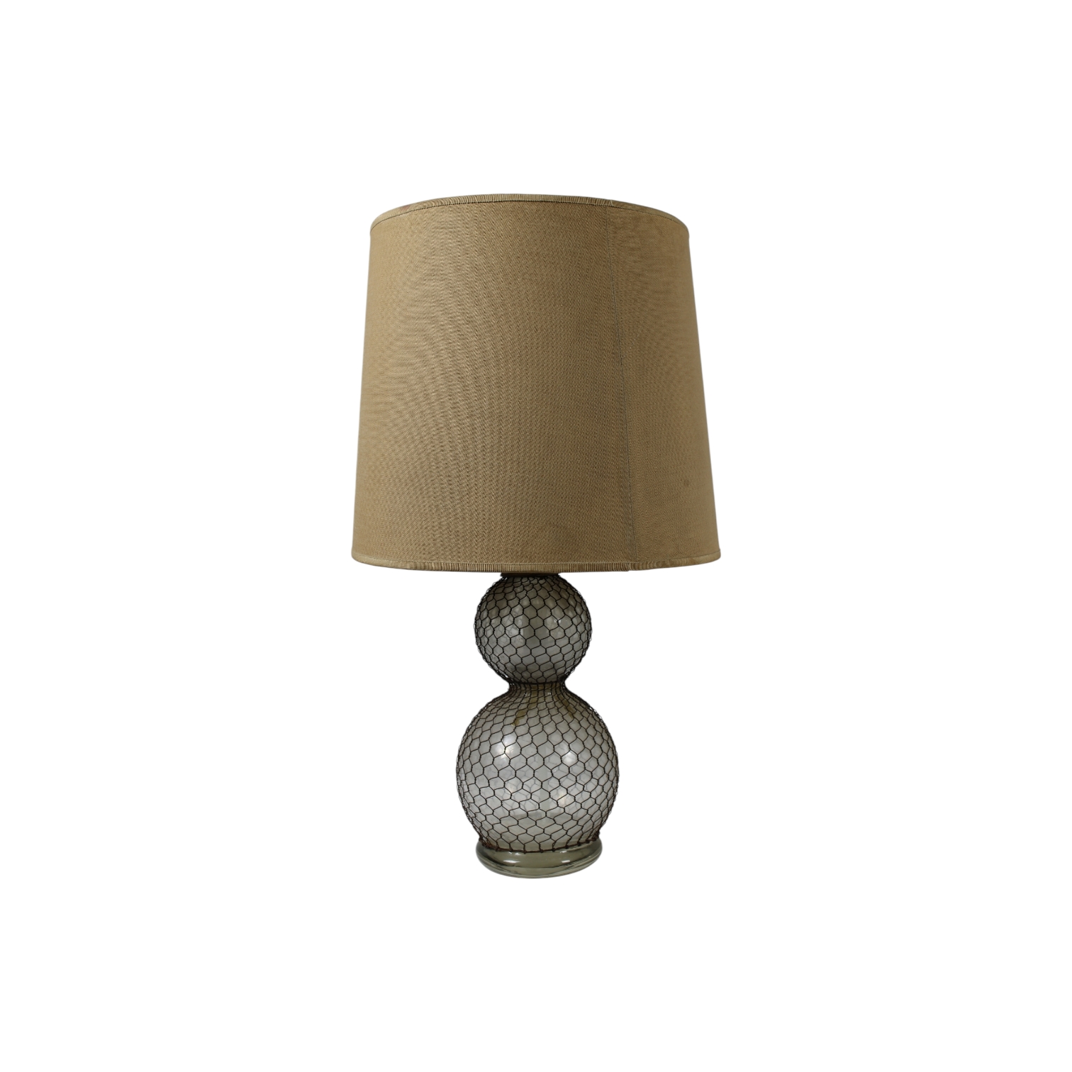 ANTICO SIFONE DA SELZ in vetro e rete metallica anni 30/40 produzione francese trasformato in lampada da tavolo con paralume h cm 61 x 31