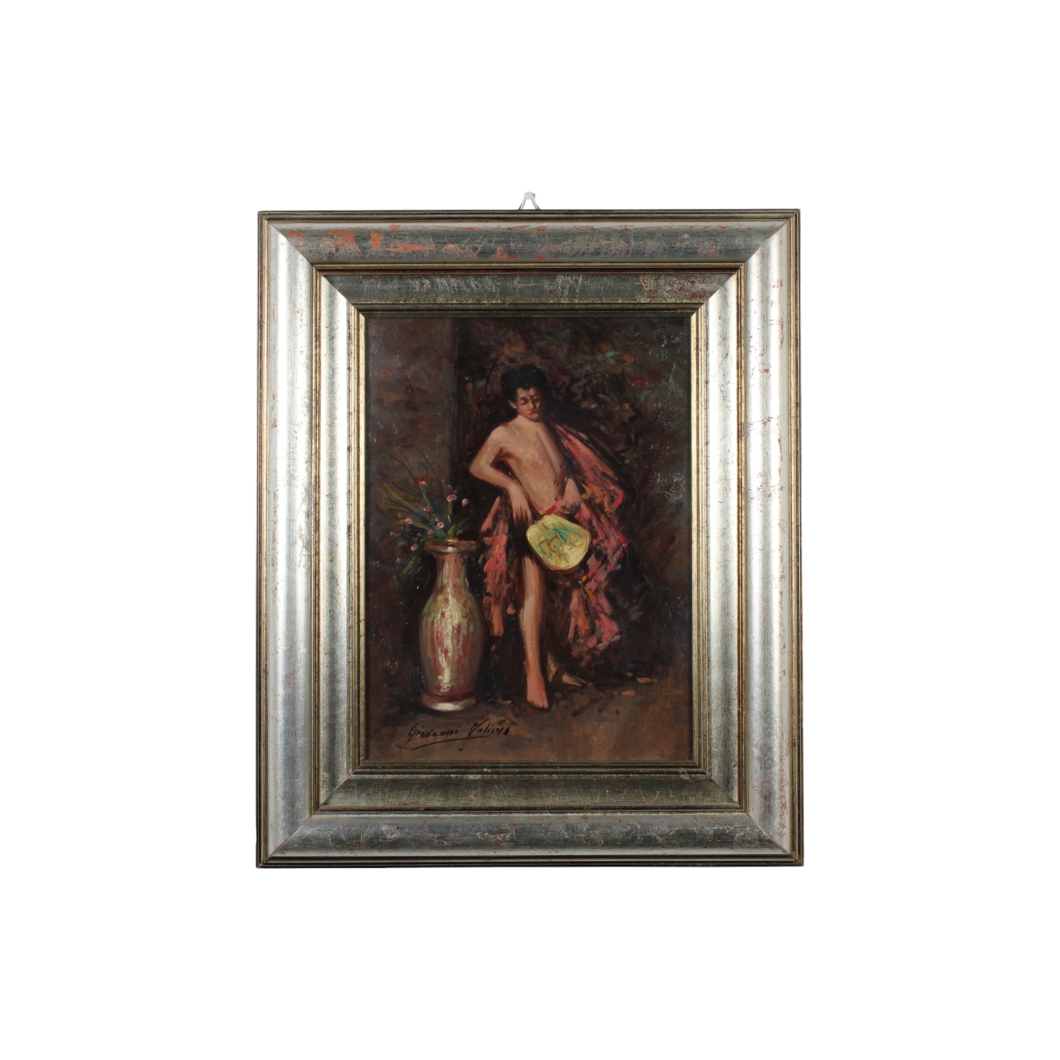 OLIO SU TELA raffigurazione classica firma indistinta . Dentro cornice in legno h cm 38 x 29