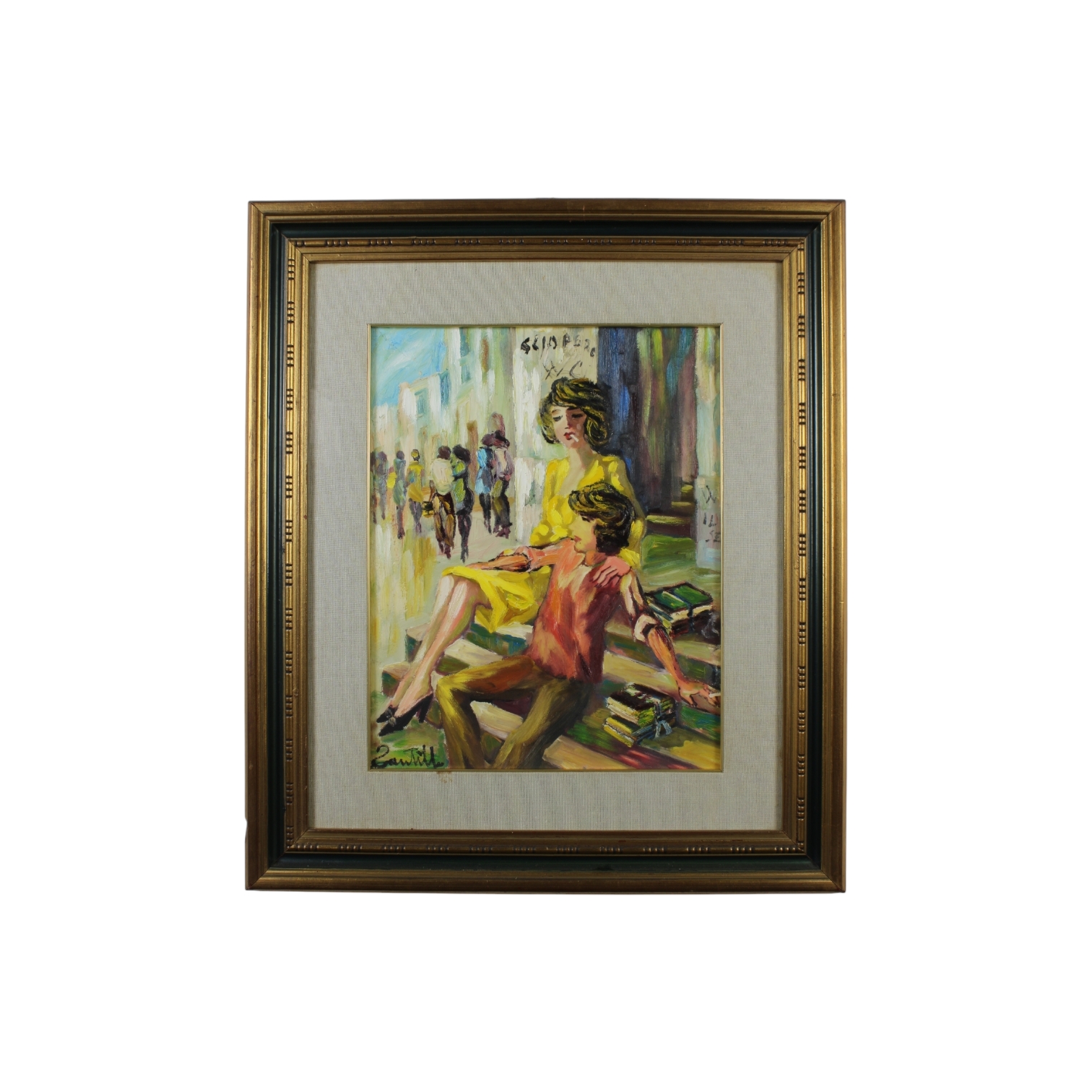 V. TANTILLO olio su tela raffigurante personaggi. Dentro cornice in legno dorato. Reca firma in basso a dx h cm 50 x 39