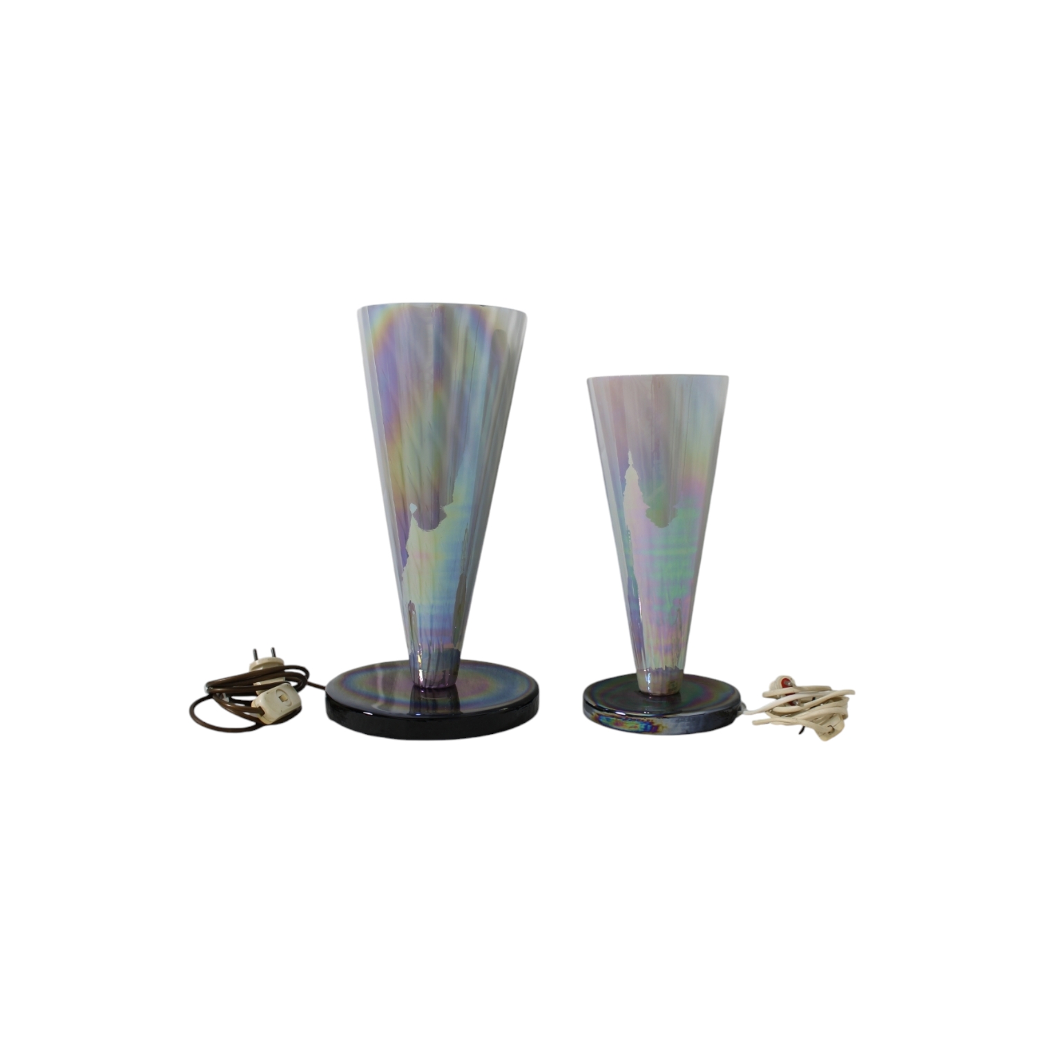SET COMPOSTO DA due lampade da tavolo in vetro di Murano anni 60 produzione italiana h cm 33 x 16 / h cm 40 x 22
