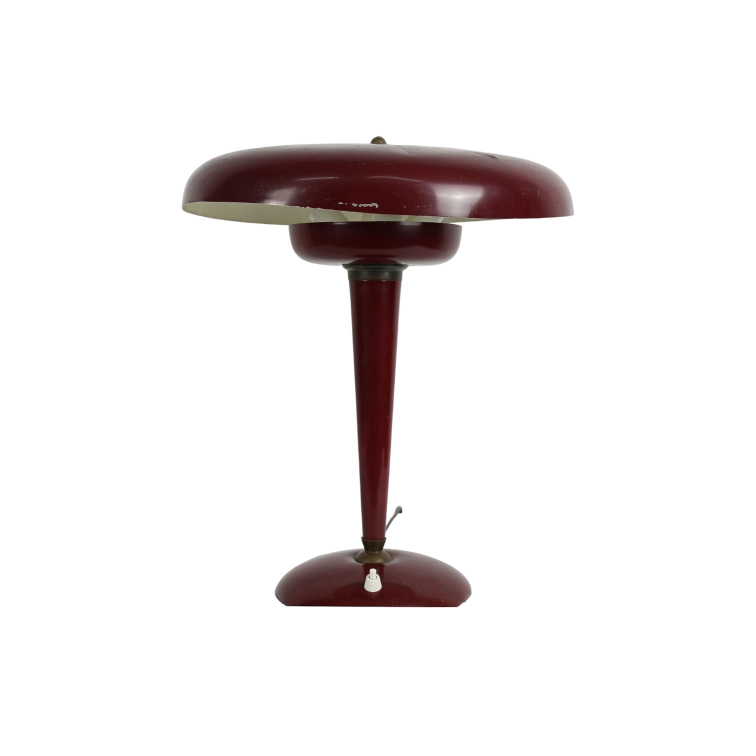GRANDE LAMPADA MINISTERIALE di colore rosso con elementi in ottone periodo stimato anni 50 di Oscar Torlasco produzione italiana, difetti h cm 40 x Ø 37