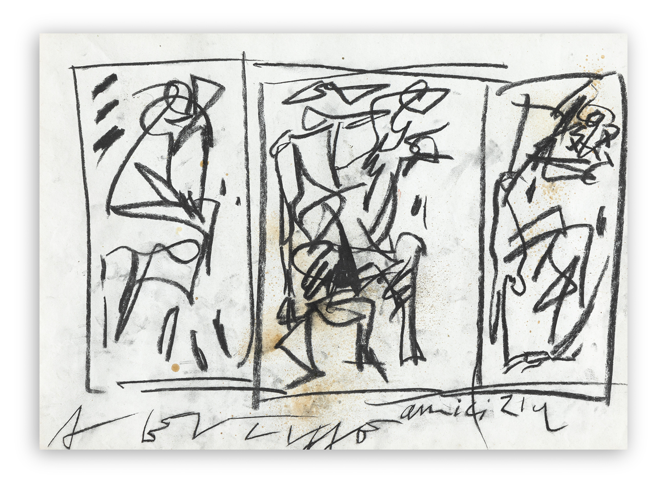 Carboncino e tecnica mista su carta