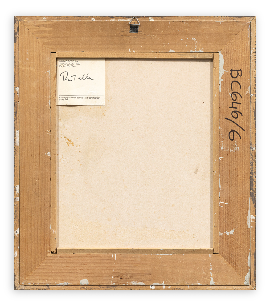 Opera registrata presso l'Archivio Mimmo Rotella (MI), come da certificato fotografico, a cura di Piero Mascitti, rilasciato in data 05/12/2024