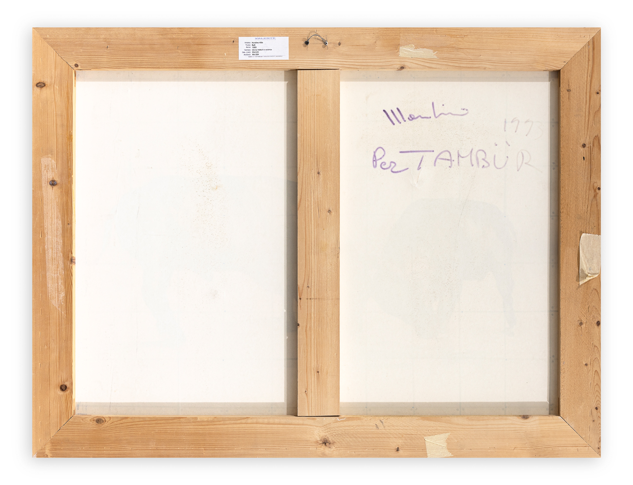 Etichetta della Galleria Valente Arte Contemporanea (SV) al retro