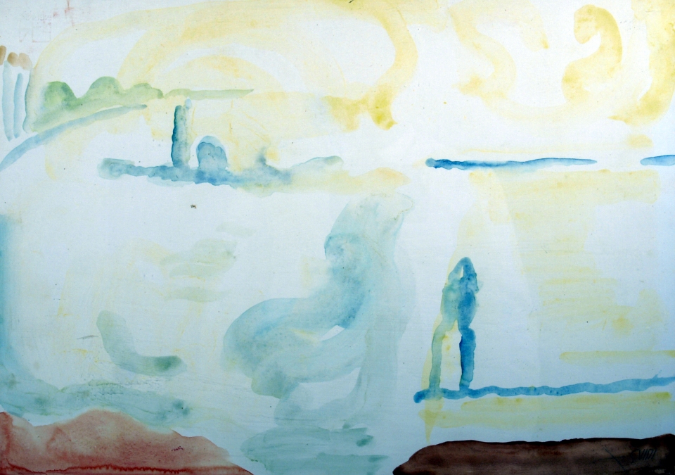 "San Giorgio" Acquerello su cartoncino cm. H: 34.00 L: 48.00 Firma in basso a destra. Timbro a secco su foto: Gianni De Marco per autentica firmato dallo stesso.