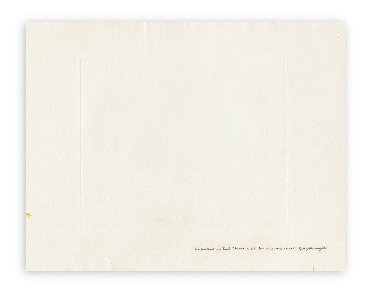 Cachet “Ce portrait de Paul Eluard a été tiré avec mon accord, Georgette Magritte” al retro