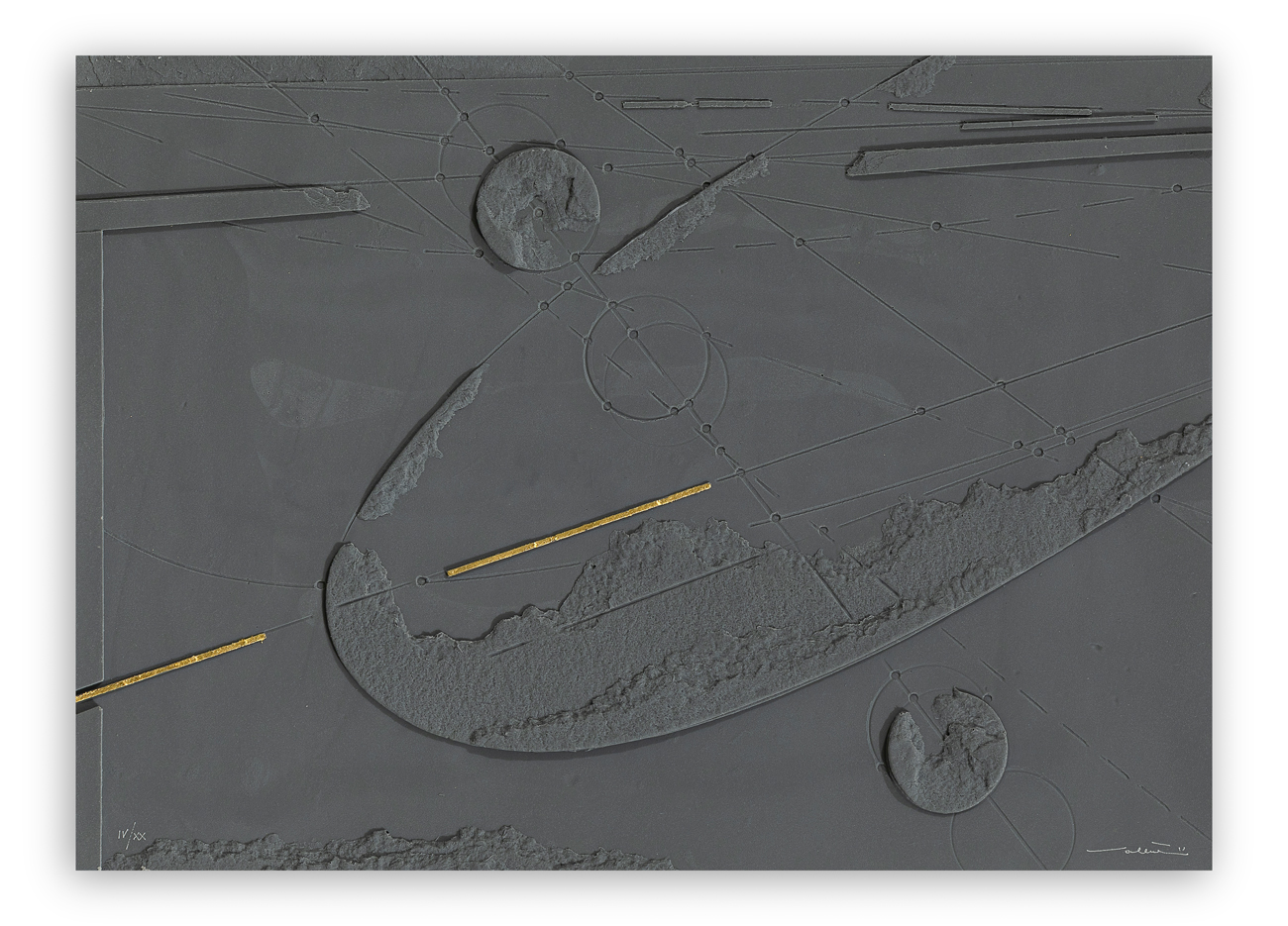 L'edizione è arricchita da un'ulteriore opera multipla in laminato plastico recante firma e numerazione (Esemplare IV/XX) al fronte