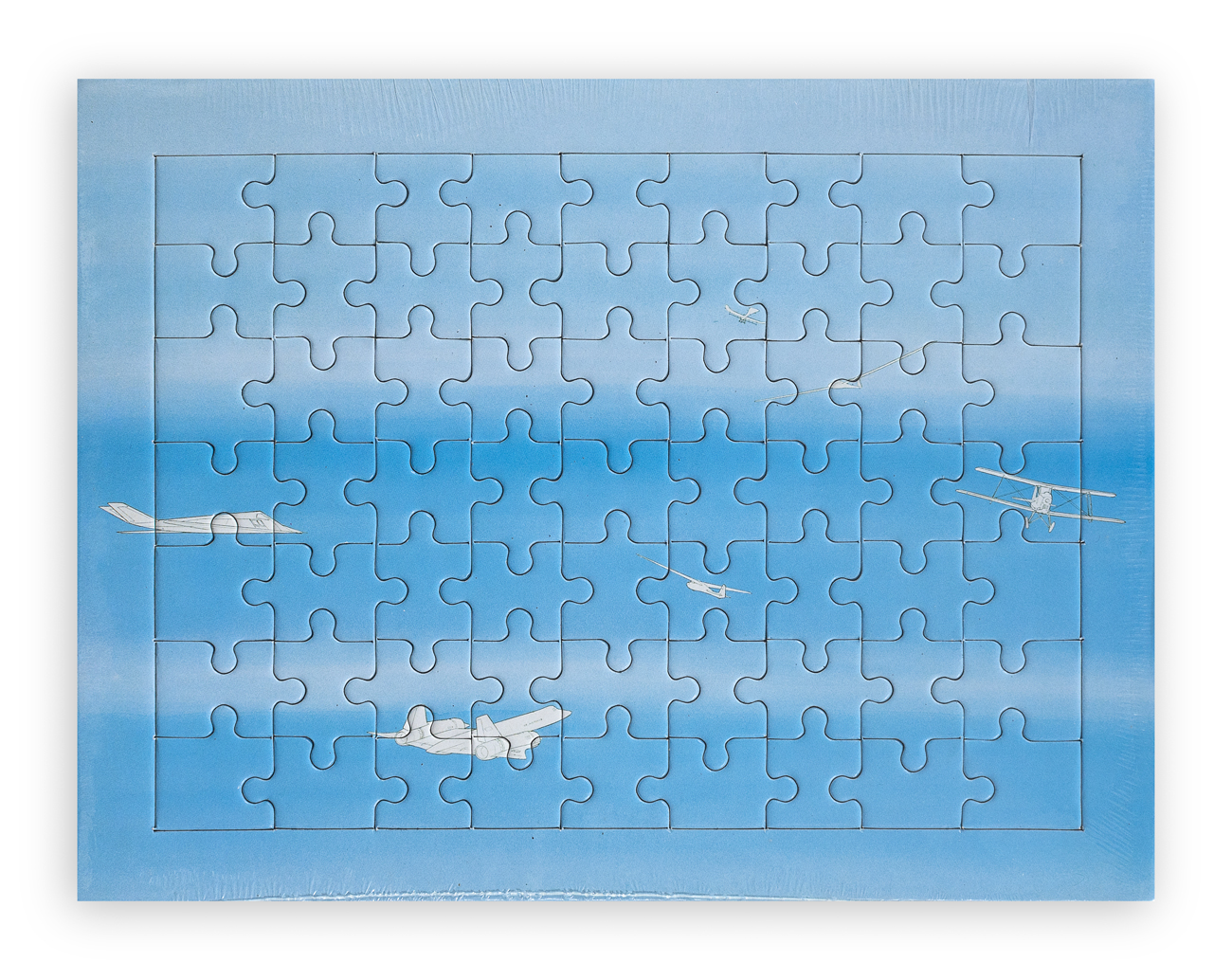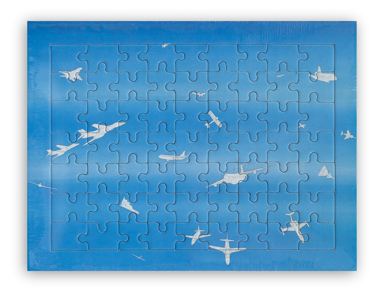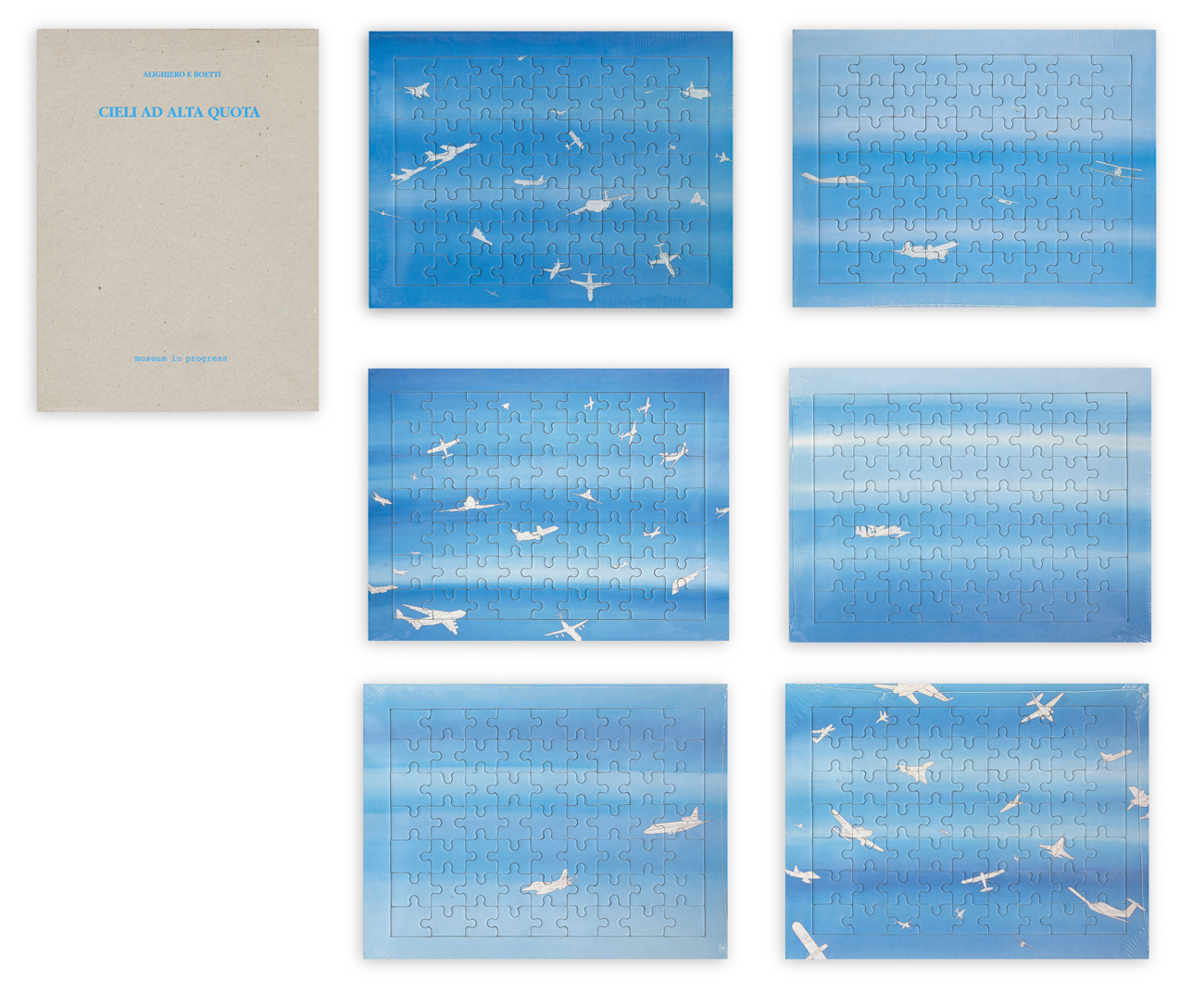 6 puzzles, cm 21x27,5 ciascuno, realizzati in 4000 esemplari non numerati da Asea Brown Boveri per conto di Australian Airlines in occasione della mostra "Cieli ad alta quota" tenutasi presso il Museum in progress