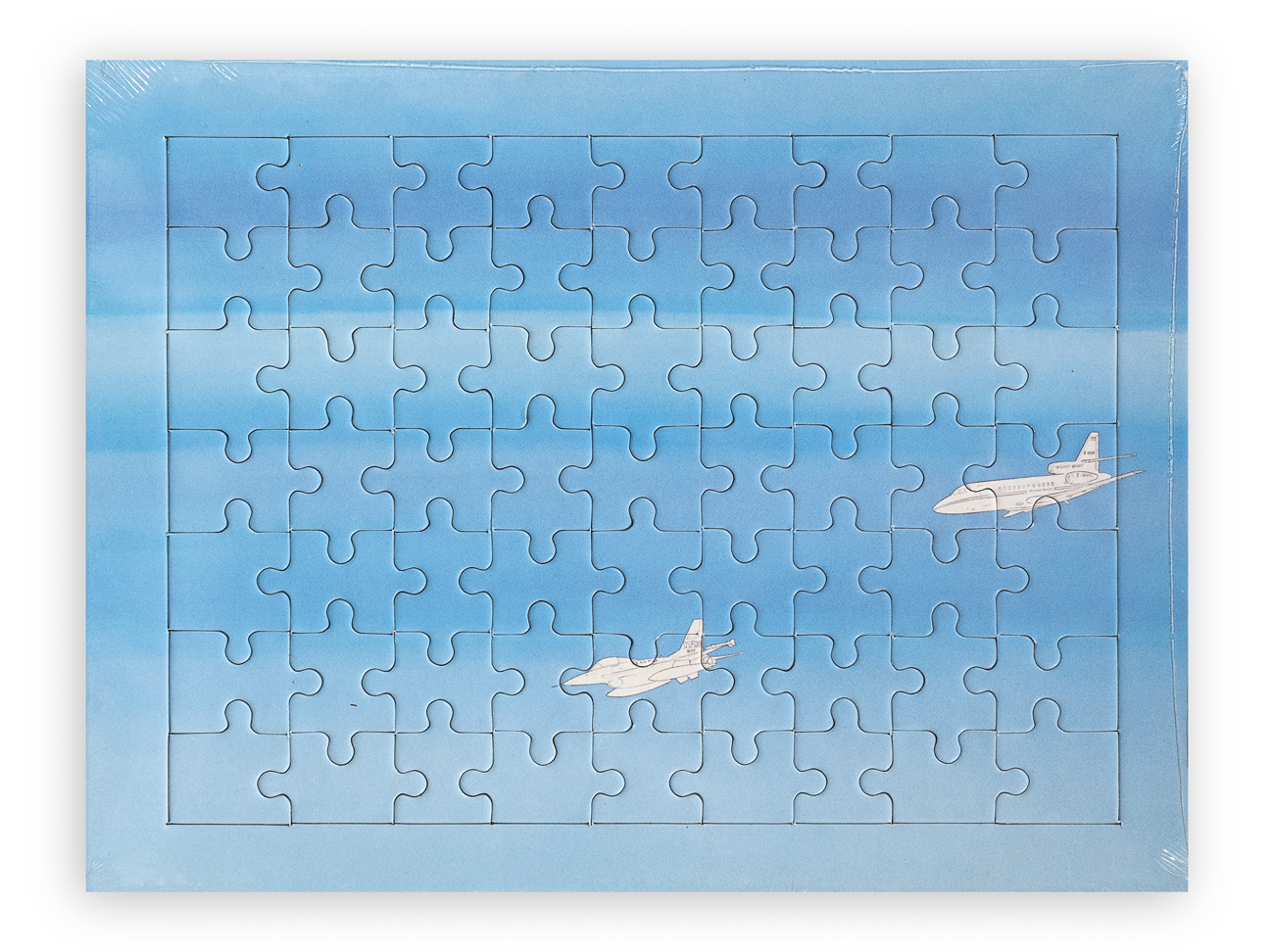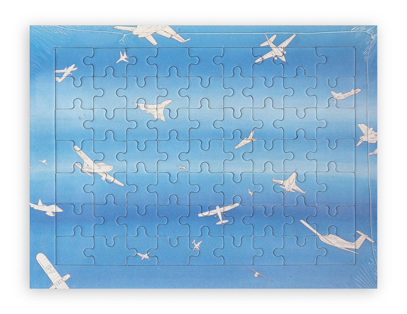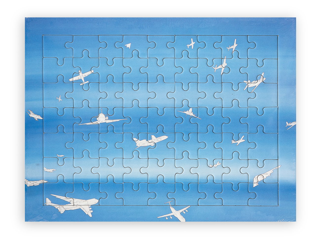 6 puzzles, cm 21x27,5 ciascuno, realizzati in 4000 esemplari non numerati da Asea Brown Boveri per conto di Australian Airlines in occasione della mostra "Cieli ad alta quota" tenutasi presso il Museum in progress
