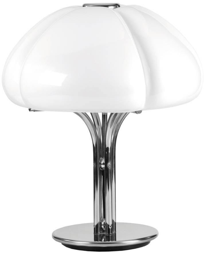 Gae Aulenti (Palazzolo della Stella, 1926) Lampada da tavolo Quadrifoglio Produzione: Guzzini, 1974 Stelo in acciaio cromato e calotta in perspex opalino cm 52 h x 50 diametro