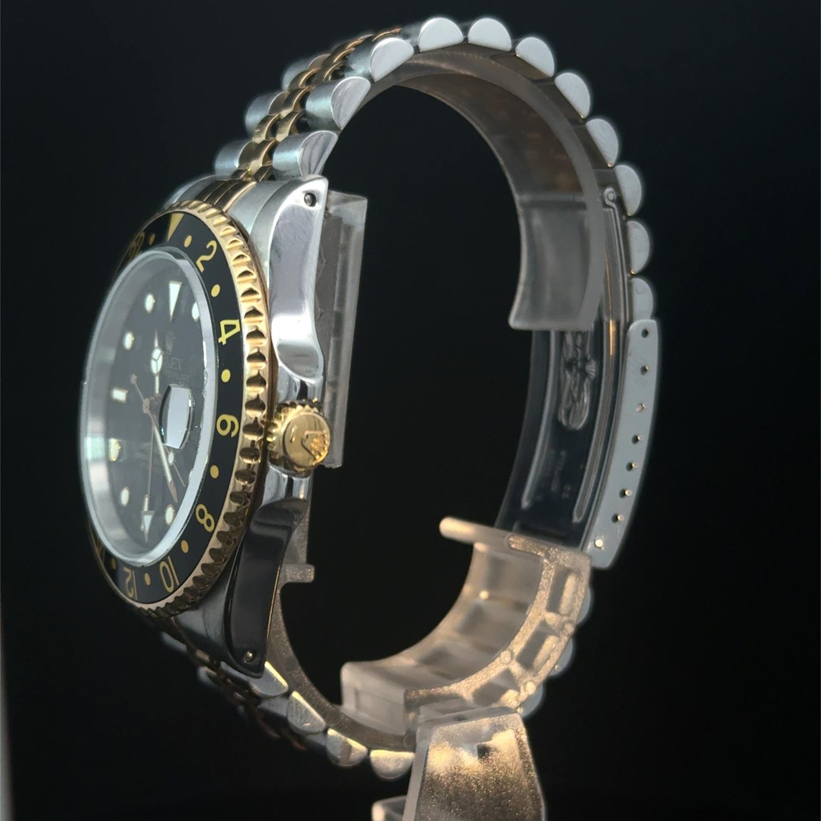 Marca Rolex Modello (Orologio) GMT-Master II Numero di referenza 16713 Carica Automatico Materiale della cassa Oro/Acciaio Materiale cinturino Oro/acciaio Anni 90 documenti originali Rolex, no box la scatola è utilizzata solo per foto non in vendita Materiale della cassa Oro/Acciaio Diametro 40 mm Impermeabile 10 ATM Materiale lunetta Oro giallo Vetro Vetro zaffiro Numeri sul quadrante Senza numeri Cinturino Materiale cinturino Oro/acciaio Colore cinturino Oro/acciaio Chiusura Déployante Funzioni Data, GMT