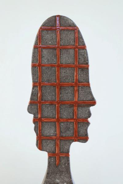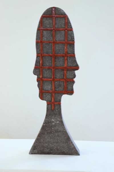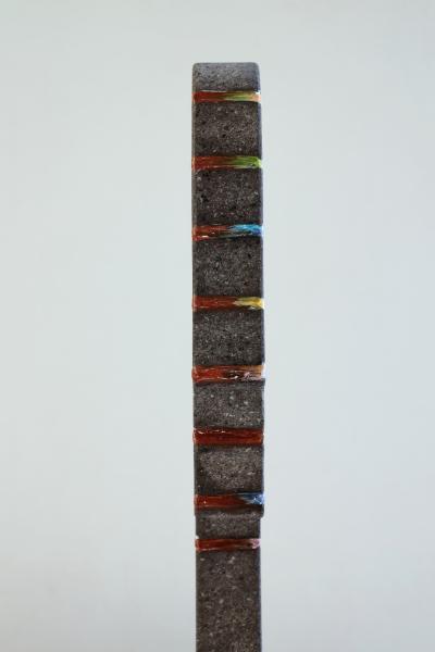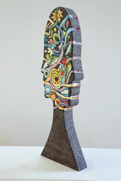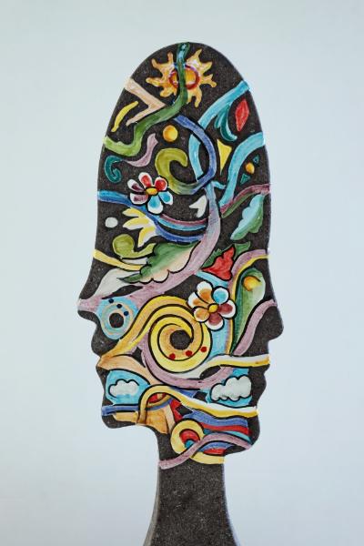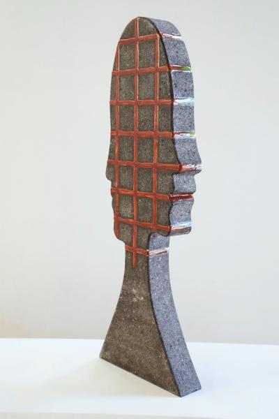Scultura a tecnica mista. Roccia vulcanica dell'Etna e smalti, cottura a 950 gradi.