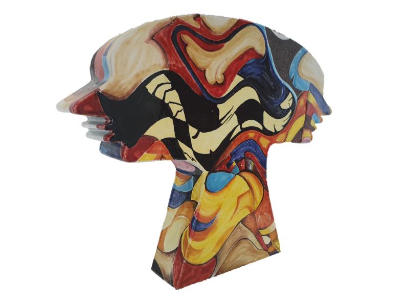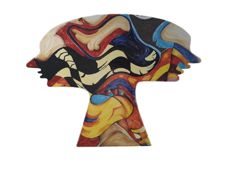 Scultura a tecnica mista. Roccia vulcanica dell'Etna e smalti, cottura a 950 gradi.